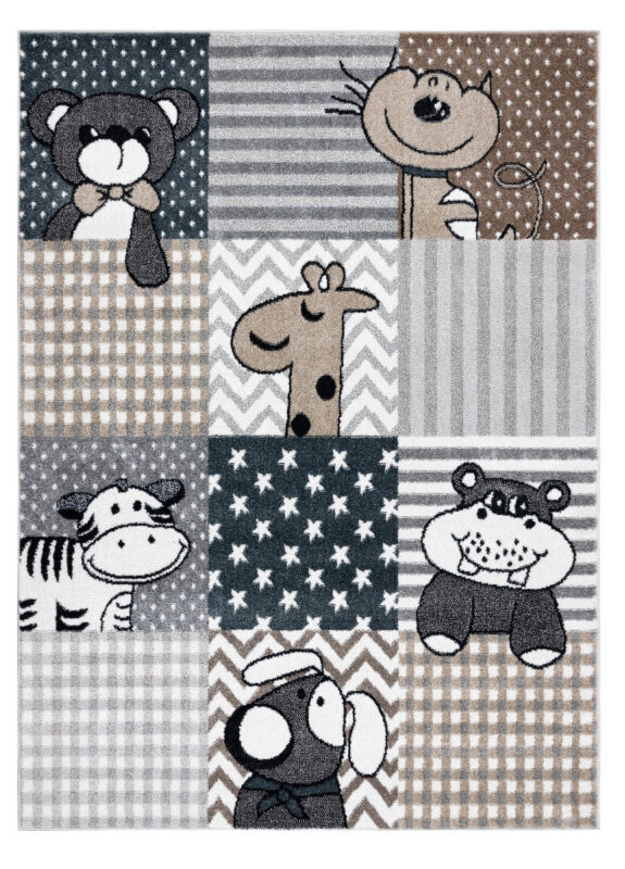 Detský kusový koberec Fun Pets grey s veselými zvieratkami sa bude páčiť každému dieťaťu. Najväčšou prednosťou tohto koberca je veľmi jemný strihaný vlas zo 100% polypropylénu, ten zaručí pohodlné a mäkké hranie a neprechladnutie zo zeme. Na výrobu nebola použitá žiadna toxická látka a tým výrobok je veľmi vhodný aj pre alergické deti.