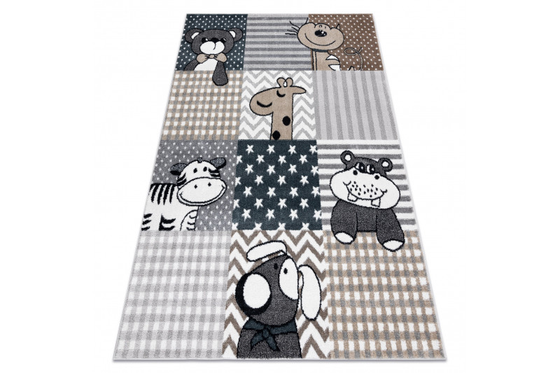 Detský kusový koberec Fun Pets grey s veselými zvieratkami sa bude páčiť každému dieťaťu. Najväčšou prednosťou tohto koberca je veľmi jemný strihaný vlas zo 100% polypropylénu, ten zaručí pohodlné a mäkké hranie a neprechladnutie zo zeme. Na výrobu nebola použitá žiadna toxická látka a tým výrobok je veľmi vhodný aj pre alergické deti.