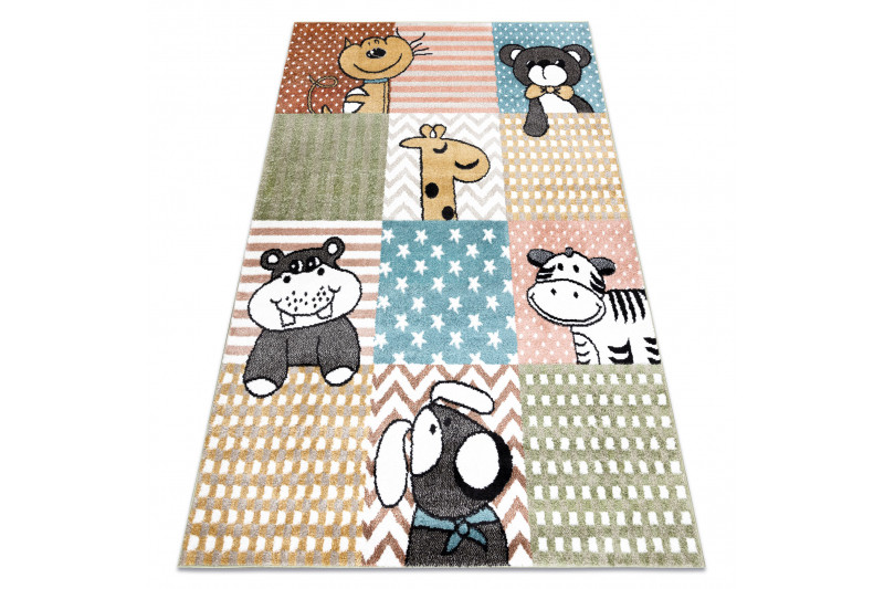 Detský kusový koberec Fun Pets multi s veselými zvieratkami sa bude páčiť každému dieťaťu. Najväčšou prednosťou tohto koberca je veľmi jemný strihaný vlas zo 100% polypropylénu, ten zaručí pohodlné a mäkké hranie a neprechladnutie zo zeme. Na výrobu nebola použitá žiadna toxická látka a tým výrobok je veľmi vhodný aj pre alergické deti.