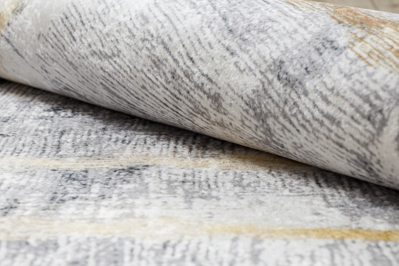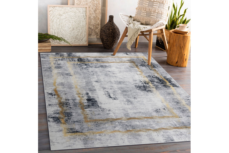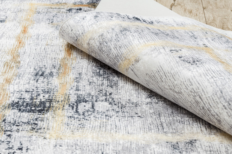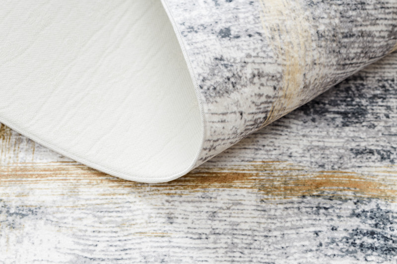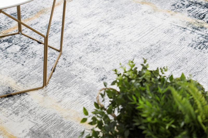Koberec Andre Frame 1065 má veľmi zaujímavú šedú kresbu so zlatým rámovaním. Ide o koberec s veľmi jednoduchou údržbou. Na čistenie je možné využiť pranie pri teplote nepresahujúcej 30°C . Spodná strana je opatrená protišmykovou gumou, ktorá zaisťuje nekĺzanie koberca po podlahe. Hodí sa aj do priestorov s podlahovým vykurovaním. Uplatnenie nájde v obývacej izbe, v kuchyni, v kúpeľni aj na chodbe či v hale.