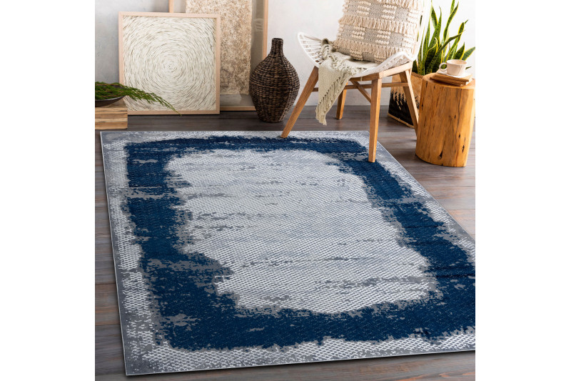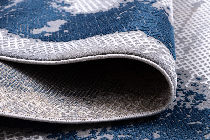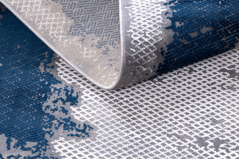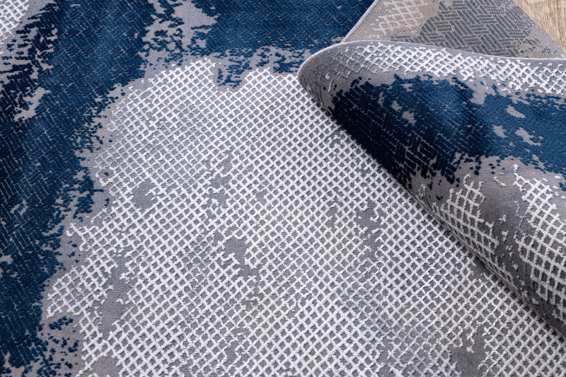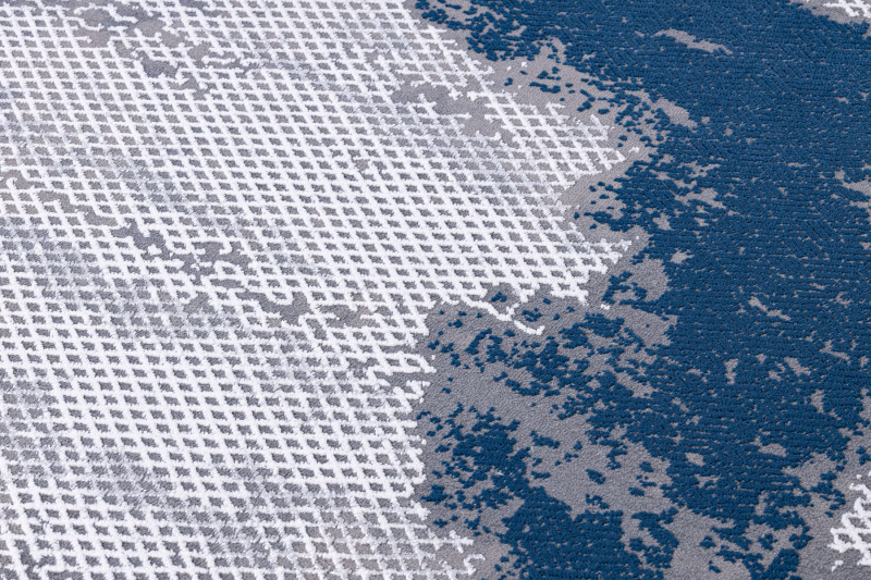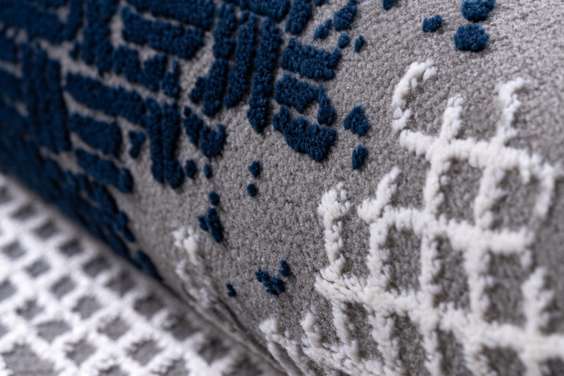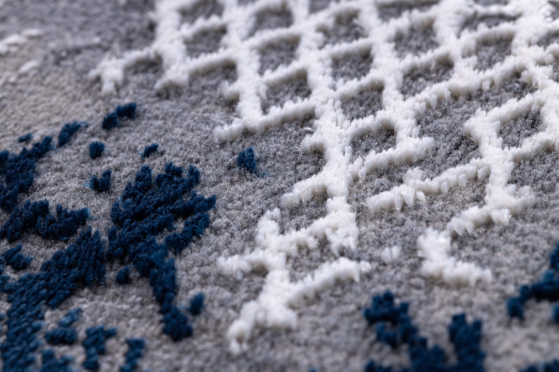 Koberec Core Frame v modro šedej farbe je originálny a štýlový koberec, ktorý nájde uplatnenie nielen v obývacích izbách, predsieni, ale radi ho budú mať dospievajúce deti v izbičke. Príjemný pocit pri chôdzi na boso a dotyk prepožičiava vyhotovenie vlasu v dvoch výškach a použitie syntetických materiálov polypropylén a polyester. Tieto materiály sú vhodné pre alergikov. Koberec môžete položiť na podlahové vykurovanie.