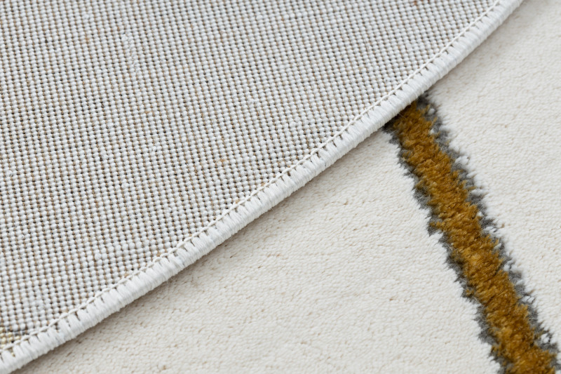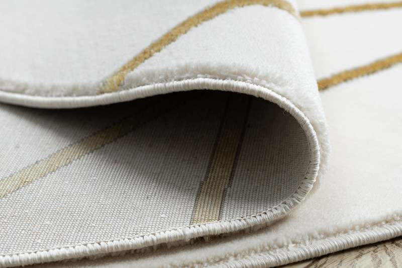 Kruhový koberec Emerald 1013 v krémovej farbe so zlatým veľmi zaujímavým geometrickým vzorom prináša do interiéru eleganciu v luxusnom prevedením, ktorý vytvorí výrazný stredobod v miestnosti. Veľkou prednosťou tohto koberca nie je len vzhľad, ale je aj veľmi kvalitný. Spojením polypropylénu a polyesteru, vytvára veľmi kvalitnú, pevnú a na dotyk príjemnú štruktúru, ktorá je odolná a stála. Vo vláknach polyester tiež vytvára odlesky a tým prehlbuje estetický ráz koberca. Koberec je možné položiť v priestoroch s podlahovým vykurovaním.