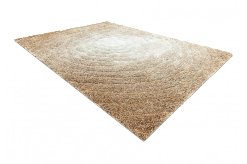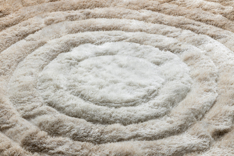 Koberec Flim s vysokým shaggy vlasom, ktorý je vyrobený v dvoch výškach a vytvára luxusný 3D efekt. Kruhový dizajn vo farebných odtieňoch béžovej vykúzli krásny dizajnový prvok v interiéri. Koberec sa bude dobre vynímať v spálni alebo v obývacej izbe, kde oceníte veľmi jemnú a huňatú štruktúru pre dokonalý pôžitok pre bosé nohy. Je vyrobený z polyesteru s certifikátom OEKO-TEX , ktorý je bezpečný a je tiež vhodný pre alergikov a deti.