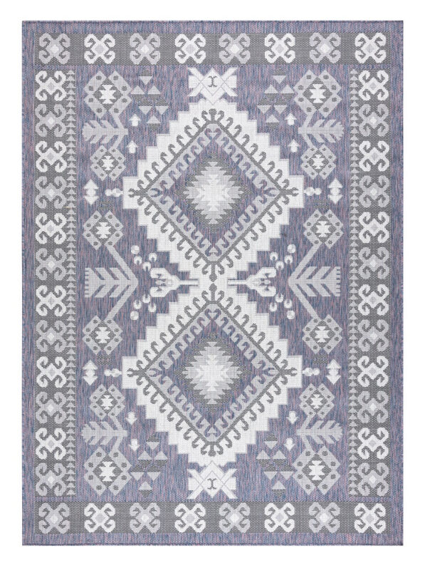 Kusový koberec Sion s aztéckou symbolikou v kombinácii modrej, béžovej a ružovej, patrí ku kobercom tkané do typu Sisál, ktoré majú absenciu vlasu a podkladu. Telo koberca tvorí veľmi pevné slučky, ktoré sú odolné a prepožičiavajú kobercu jednoduchú údržbu, odolnosť voči vysokej záťaži a poveternostným vplyvom. Koberec sa bude vynímať v obývacej izbe, v kuchyni a tiež aj na balkóne alebo terase. Krásny a originálny vzor vytvorí príjemný priestor na trávenie voľného času. Využitý materiál tiež zaručí stálosť farieb as obšitím po celom obvode odolnosť voči deformáciám.