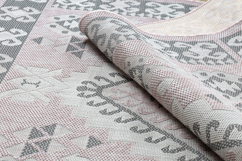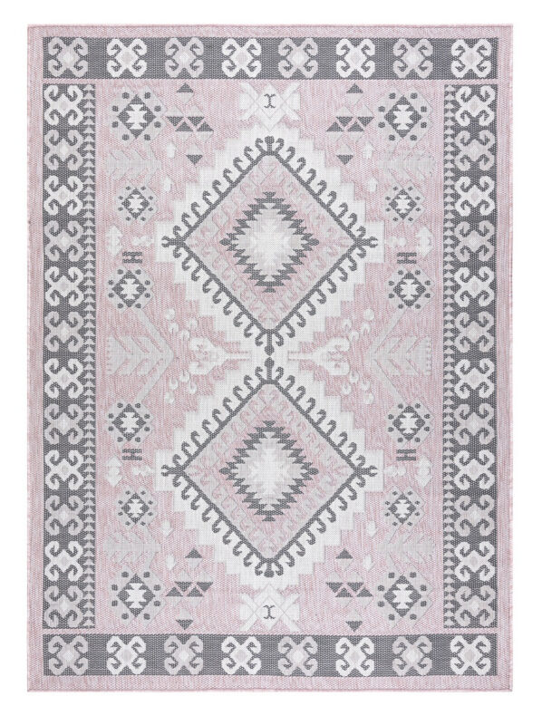 Kusový koberec Sion s aztéckou symbolikou v kombinácii ružovej a béžovej, patrí ku kobercom tkané do typu Sisál, ktoré majú absenciu vlasu a podkladu. Telo koberca tvorí veľmi pevné slučky, ktoré sú odolné a prepožičiavajú kobercu jednoduchú údržbu, odolnosť voči vysokej záťaži a poveternostným vplyvom. Koberec sa bude vynímať v obývacej izbe, v kuchyni a tiež aj na balkóne alebo terase. Krásny a originálny vzor vytvorí príjemný priestor na trávenie voľného času. Využitý materiál tiež zaručí stálosť farieb as obšitím po celom obvode odolnosť voči deformáciám.