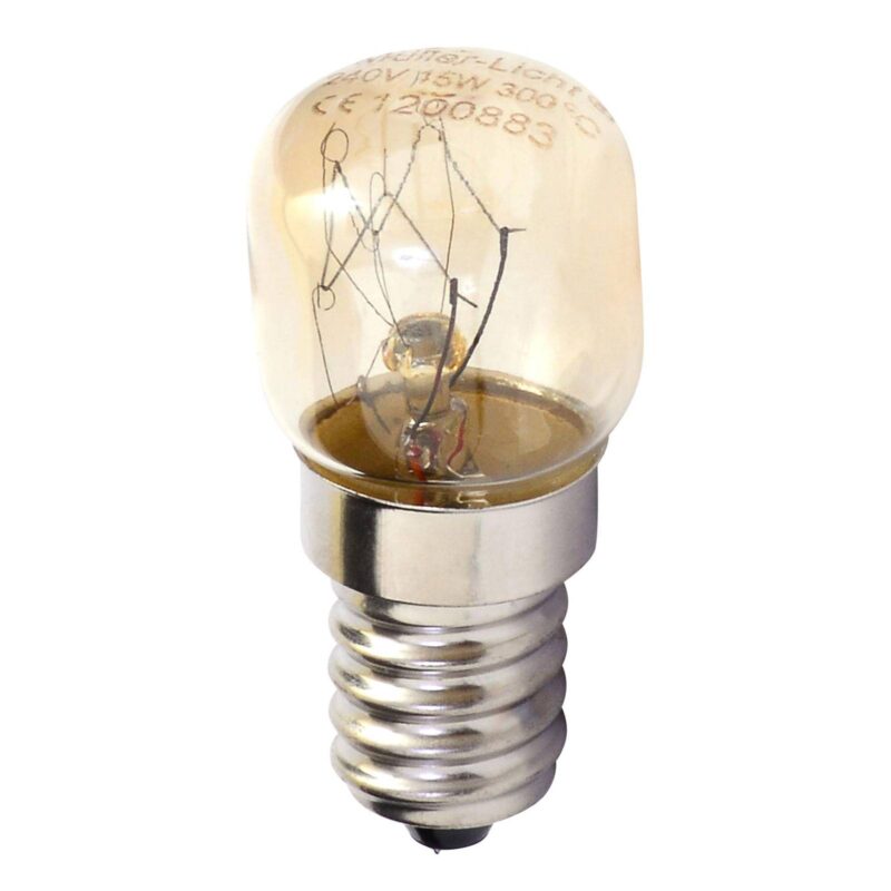 Žiarovka do rúry E14 15 W s RA98 Táto žiarovka je ideálna na každodenné použitie v domácnosti a má špeciálnu teplotnú odolnosť, vďaka ktorej je obzvlášť vhodná na použitie v priestoroch s vysokou teplotou. Vlastnosti: – má uhol vyžarovania 360° – EEK E – má teplú bielu farbu svetla 2 400 K – je stmievateľná – rúra na pečenie je veľmi odolná voči vysokým teplotám (do 300°) – doba horenia je približne 1 000 hodín