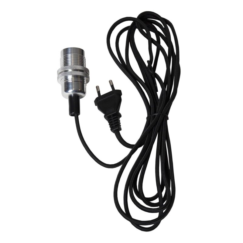 Kovová objímka E14 Fade s čiernym prívodným káblom Zásuvka E14 Fade je vyrobená z kovu a má prívodný kábel z plastu. Kábel je vybavený plochou zástrčkou Euro. Objímka s prívodným káblom je ideálna na dekoráciu, pretože kábel je ohybný a obzvlášť dobre sa uplatní so žiarovkou. – Dĺžka kábla: 350 cm – Osvetľovacie zariadenie nie je súčasťou dodávky