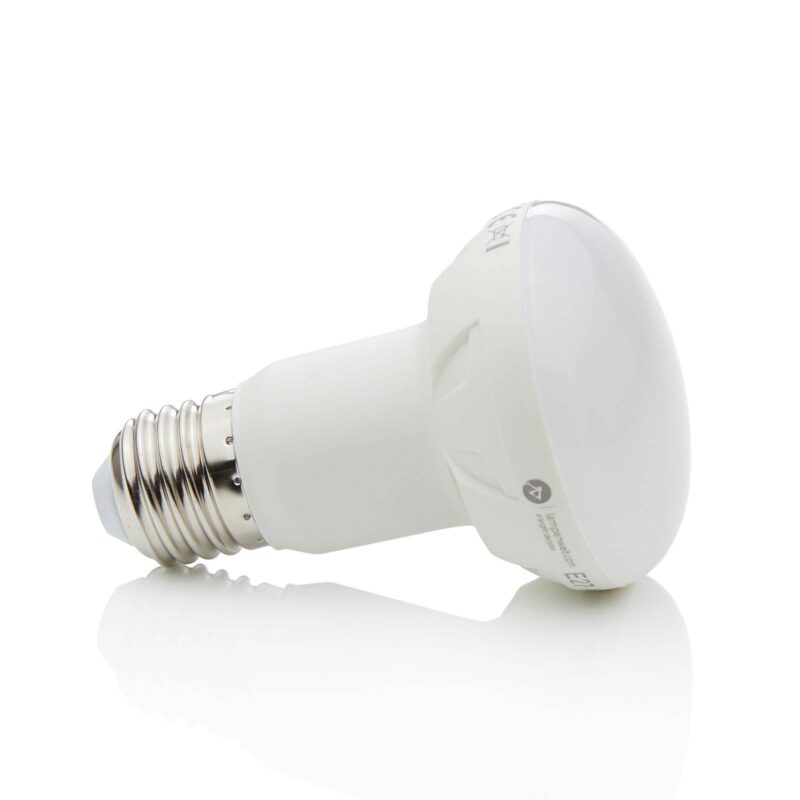 E27 11W LED reflektor R63 Vďaka svojmu tvaru je tento reflektor LED vhodný najmä na bodové osvetlenie alebo do reflektorov. Tento reflektor s uhlom vyžarovania 120° rovnomerne osvetľuje každý obytný priestor a vytvára útulnú atmosféru vďaka teplému bielemu svetlu s hodnotou 3 000 kelvinov. Vďaka účinnej technológii LED možno s touto lampou dosiahnuť až 85 % úsporu energie a zároveň veľmi dlhú životnosť 30 000 hodín. Vlastnosti: – Možno vymeniť za štandardné reflektory s päticou E27 s výkonom do 70 W. – Má účinník > 0,6 – nie je stmievateľný – farby sú reprodukované veľmi prirodzene (RA84) – Zachovanie svetelného toku svietidla ≥ 85 % pri 75 % priemernej životnosti