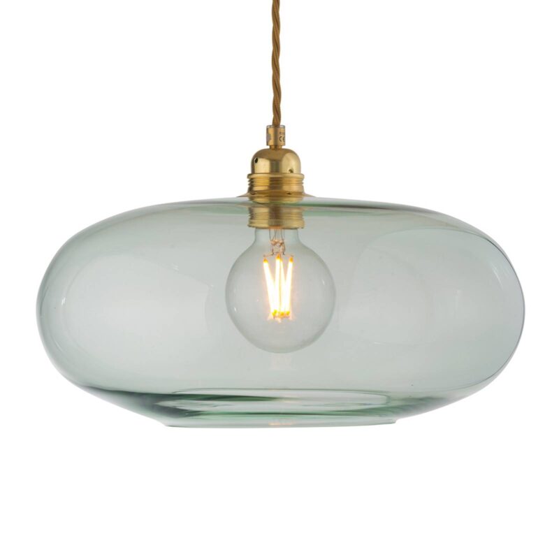 Závesné svietidlo Horizon s ručne fúkaným sklom v elegantnej zelenej farbe Oválne a ploché, takto sa vyrába estetické tienidlo na lampu a ako ručne fúkaný kúsok je v každej žiarovke jedinečný. Svojim dizajnom a prirodzenosťou osobitným spôsobom odráža aspekty prírody a pripomína fascinujúcu rozlohu horizontu. Priesvitné sklo v nádherne jemnej zelenej farbe udržuje jasný výhľad do interiéru a zaisťuje magický svetelný efekt, ktorý je rovnomerne rozložený po celej miestnosti. Mladá značka EBB & FLOW znamená dekoratívne osvetlenie a bola založená v roku 2009 Susanne Nielsen. Všetky vzory, ktoré vždy prichádzajú s dánsko-škandinávskym alebo britským štýlom, pochádzajú z jej pera. Ručne fúkané svetlá sú vyrobené v Európe s tradičným remeselným spracovaním a okrem atraktívneho dizajnu vždy zaujmú kvalitným spracovaním. tienidlo na lampu je vyrobené z ručne fúkaného skla. Každá lampa je jedinečná; Z dôvodu výrobného procesu môžu existovať malé odchýlky, ako napríklad malé vzduchové vrecká atď.