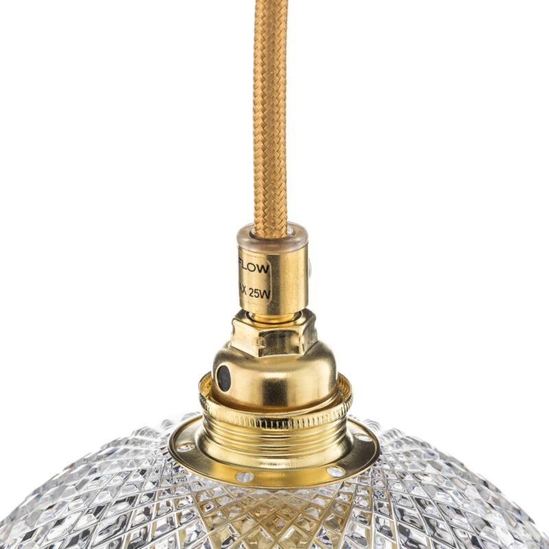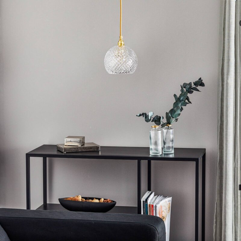 Závesné svietidlo Rowan s kontrastom krištáľového skla a zlata Ručne fúkané sklenené telo vyrobené z krištáľového skla je zvláštne dizajnom prívesného svetla Rowan. To umožňuje svetlu jasne osvetliť miestnosť zo všetkých strán. Príjemný kontrast tvoria objímka žiarovky a kvalitný textilný kábel, ktoré sú opatrené lesklým zlatým tónom a ušľachtilým spôsobom dotvárajú dizajn. Vďaka svojmu klasickému vzhľadu a jednoduchému dizajnu je závesné svietidlo Rowan ideálne vhodné na doplnenie mnohých rôznych štýlov bývania. Či už je lampa Rowan inštalovaná jednotlivo alebo v skupinách, či už v rohoch alebo nad stolom, vždy ponúka dekoratívny pútač očí. Mladý dánsky štítok EBB & FLOW znamená vysokokvalitné dekoratívne svetlá. Séria Rowan je príkladom úspešnej symbiózy ručne fúkaného skla, vysoko kvalitných textilných a kovových prvkov, ktoré charakterizujú každú lampu od zakladateľky spoločnosti Susanne Nielsen. tienidlo na lampu je vyrobené z ručne fúkaného skla. Každá lampa je jedinečná; Z dôvodu výrobného procesu môžu existovať malé odchýlky, ako napríklad malé vzduchové vrecká atď.
