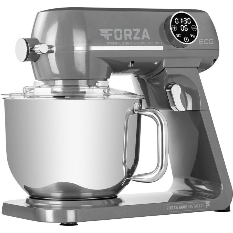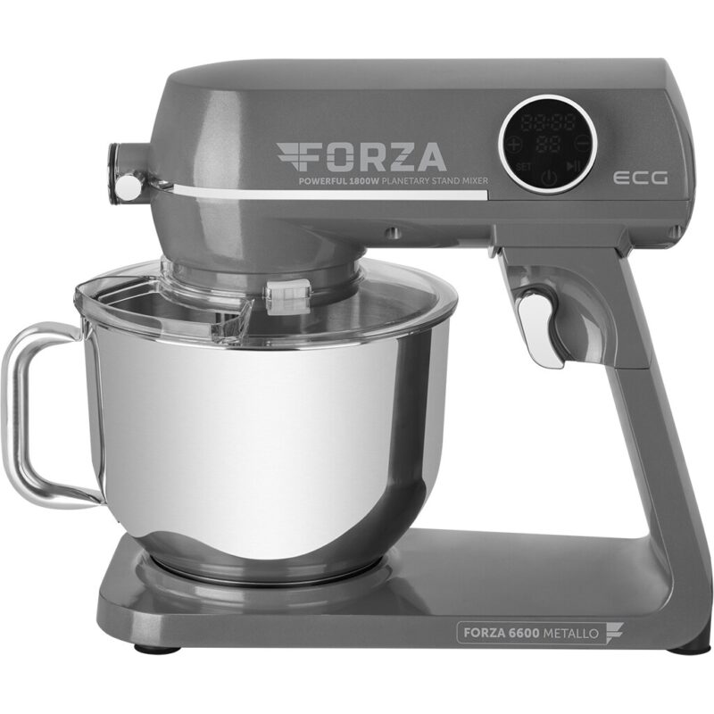 Kuchynský robot ECG FORZA 6600 Metallo si zamilujete hneď na prvý pohľad. Na jeho celokovovom dizajne si totiž dali výrobcovia obzvlášť záležať, a tak ide o spotrebič, ktorý sa stane ozdobou každej kuchyne.Oceníte však na ňom aj širokú všestrannosť, vďaka ktorej vám v kuchyni pomôže pri mnohých rôznych činnostiach. Môžete s ním ľahko a rýchlo nakrájať zeleninu, pomlieť mäso aj treba pripraviť cesto na pečivo. V každom prípade pritom môžete počítať s bezproblémovou prevádzkou, pretože prístroj disponuje kvalitnými celokovovými prevodmi a výkonným motorom s medeným vinutím, na ktorý je vždy spoľah.K prednostiam kuchynského robota patrí aj jeho miešacia misa s praktickým robustným držadlom pre jednoduchú manipuláciu. Tá sa totiž môže pochváliť veľkým objemom 6,5 litra, takže sa vám do nej zmestí množstvo ingrediencií naraz.Misa navyše vyniká aj špičkovým remeselným spracovaním – bola vyrobená z vysoko akostnej nehrdzavejúcej ocele triedy SUS 304. A praktický je na nej aj priehľadný odnímateľný kryt s dávkovacím otvorom.Či už chystáte palacinky, alebo ste sa dali do prípravy vianočných cukroviniek, kuchynský robot ECG FORZA 6600 Metallo vám pomôže vytvoriť cesto dokonalej konzistencie. Stačí do jeho misy vložiť potrebné ingrediencie a zvyšok nechať na ňom. Robot využíva unikátny systém planetárnej rotácie, pri ktorom sa jeho nadstavce otáčajú okolo vlastnej osi aj okolo osi prevodovky. Všetky suroviny sa tak spoja úplne dokonale.Prístroj navyše ponúka variabilnú reguláciu otáčok s plynulým rozbehom a 10 rýchlosťami, takže môžete jeho činnosť presne prispôsobiť receptu, ktorý práve chystáte. A aby toho nebolo málo, využívať môžete aj špeciálny pulzný režim.Obsluhu kuchynského robota ECG zvládnete ľavou zadnou. Pomôže vám s ňou totiž elegantný dotykový ovládací panel kruhového tvaru, ktorého súčasťou je aj prehľadný LED displej.Iste oceníte aj praktickú funkciu časovača, vďaka ktorej si môžete nastaviť presný čas, počas ktorého má robot pracovať. Keď tak napr. chystáte šľahačku, nemusíte sa obávať, že by ste ju príliš dlhou prípravou takpovediac prešľahali – jednoducho nastavíte optimálnu dobu šľahania a môžete počítať s dokonalým výsledkom.Aby ste sa mohli na kuchynský robot spoľahnúť pri mnohých rôznych kulinárskych činnostiach, dostanete k nemu rovno aj množstvo praktického príslušenstva. Využívať môžete miešací hák na cesto, šľahací hák, šľahaciu metlu z nehrdz. ocele či pogumovanú metlu so stierkou na miešanie krémov. Tiež vám k nemu bol pribalený mlynček na mäso s 3 vymeniteľnými diskami (pre mletie rôznych typov mäsa) či bubnové strúhadlo s 3 výmennými nehrdz. nadstavcami.Ak patríte medzi priaznivcov talianskej kuchyne, poteší vás aj možnosť dokúpenia špeciálneho výrobníka cestovín (Pasta Maker).