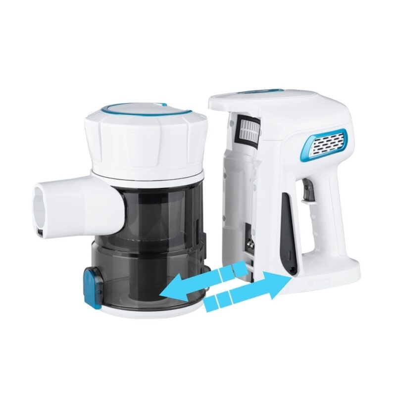 Tyčový bezvreckový vysávač s odnímateľným ručným vysávačom je skvelým pomocníkom pre rýchle upratovanie domácnosti. Batérie s veľkou kapacitou zaistí veľký akčný rádius vysávača s dobou vysávania až 30 minút. Bez problémov s vysávačom upratáte aj väčšiu izbu.O dostatok sacieho výkonu sa postará vysoko účinný 150 W cyklónový motor. Odnímateľná jednotka vysávača je ideálna pre okamžité upratovanie drobných nečistôt. Podlahová hubica s LED podsvietením má vymeniteľné kefy, môžete si zvoliť medzi kefou na koberce či tvrdé podlahy. O ľahkú manipuláciu a prístup do horšie prístupných priestorov sa postará ohybný kĺb tyčového vysávača. Vo výbave vysávača je aj stieracia poduška umožňujúca vytieranie a prachovú kefu.Po dokončení upratovania stačí vysávač odstaviť na ľubovoľné miesto či zavesiť na stenu, napájací adaptér má dostatočne dlhý kábel a za 4,5 hodiny máte opäť plne nabité. Získate tak dokonalého pomocníka pre pravidelné domáce upratovanie aj rýchle upratovanie domácnosti.Technické vlastnosti a parametre: