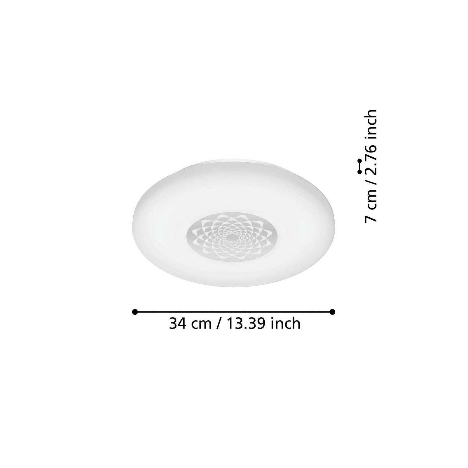 Dekoratívne a inteligentne ovládané stropné svietidlo LED Capasso-Z, laditeľná biela Okrúhle stropné svietidlo LED Capasso-Z je vybavené dekoratívnym detailom. Biele plastové tienidlo má v strede ozdobnú dekoráciu, ktorá je pri zapnutí alebo vypnutí veľmi efektná. Vo vnútri sú nainštalované moderné LED diódy, ktoré vyžarujú svetlo do miestnosti rovnomerne a bez oslnenia. Prostredníctvom aplikácie ich možno inteligentne stmievať alebo meniť farbu svetla od teplej bielej až po denné svetlo. Možné sú aj ďalšie komfortné funkcie, ako napríklad časové programovanie alebo zoskupovanie s inými svietidlami. Funkcie / kompatibilita: – Ovládanie pomocou bezplatnej aplikácie AwoX HomeControl – Kompatibilita so systémami inteligentnej domácnosti od iných výrobcov, ktoré používajú ZigBee 3.0 – možnosť priameho prepojenia s Amazon Echo a Google Home – Väčší dosah vďaka dodatočnej sieti Bluetooth – kompatibilný so všetkými výrobkami série EGLO connect-c Bluetooth – možnosť ovládania pomocou vhodného diaľkového ovládania aj bez prístupu na internet (pozri príslušenstvo) Funkcie / kompatibilita: – Ovládanie pomocou bezplatnej aplikácie AwoX HomeControl – Kompatibilita so systémami inteligentnej domácnosti od iných výrobcov, ktoré používajú ZigBee 3.0 – možnosť priameho prepojenia s Amazon Echo a Google Home – Väčší dosah vďaka dodatočnej sieti Bluetooth – kompatibilný so všetkými výrobkami série EGLO connect-c Bluetooth – možnosť ovládania pomocou vhodného diaľkového ovládania aj bez prístupu na internet (pozri príslušenstvo)
