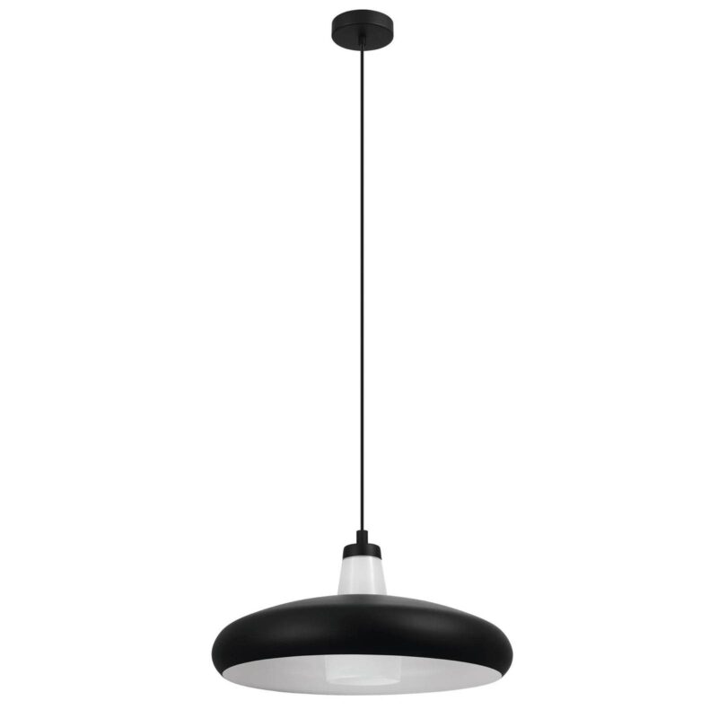 Moderné a inteligentné ovládateľné LED závesné svietidlo Tabanera-C LED závesná lampa Tabanera-C je ideálna na osvetlenie v moderných obývacích izbách, nad jedálenskými stolmi alebo pultmi. Má tvarovaný, skôr plochý tienidlo na lampu, ktoré je udržiavané v bielej a čiernej farbe. Dosť minimalistický a elegantný dizajn završuje vnútorný sklenený difúzor, ktorý štýlovo ukrýva dodávanú žiarovku E27 v bielej farbe. Toto je vybavené technológiou EGLO connect a dá sa ovládať inteligentne buď pomocou Bluetooth a vhodnej aplikácie alebo pomocou kompatibilného diaľkového ovládača. Rôzne odtiene bielej, farebné svetlo, rôzne svetelné scény alebo stlmenie svetla sú preto možné bez problémov. Vlastnosti / kompatibilita: – moderná technológia Bluetooth s chránenou sieťou – ovládateľné pomocou bezplatnej aplikácie Smart Control od spoločnosti AwoX – ovládateľný príslušným diaľkovým ovládaním EGLO connect (k dispozícii ako príslušenstvo) – stmievateľné – Ovládanie farieb RGB – Ovládanie bieleho svetla: teplá biela (2 700 K) – denne svetlo (6 500 K)