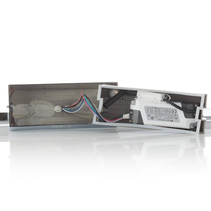 Expanzívne LED zrkadlové svetlo Tabiano-C v chrómovom prevedení so širokou plochou výstupu svetla Praktické zrkadlové LED svetlo Tabiano-C zaujme štíhlym dizajnom a jasným tvarom. Plastový difúzor sa rozprestiera po celej šírke, vyžaruje homogénne svetlo bez oslnenia a vyžaruje ho smerom dole. Vďaka mierne vystupujúcemu tvaru nástennej lampy je zrkadlo ideálne osvetlené zhora a vďaka IP44 je bez váhania použiteľné v kúpeľni. Pre pohodlnú obsluhu a použitie mnohých doplnkov je možné svetlo ovládať pomocou diaľkového ovládača EGLO connect (je súčasťou dodávky) alebo načítať bezplatnú aplikáciu do smartfónu a využívať mnoho ďalších funkcií. Plynulé stmievanie je len jednou z mnohých funkcií spolu s ovládaním bieleho svetla, ktoré zaisťuje optimálne svetlo najmä v kúpeľni. Aby bolo možné nastaviť farebné akcenty, máte prístup k 16 miliónom farieb. Tí, ktorí uprednostňujú hudbu na pozadí, môžu pomocou funkcie disco rytmicky ovládať svetlo. Integrácia do skupín a scén – či už riadená časom alebo manuálne voliteľná – je s aplikáciou detská a dá sa ovládať z ktorejkoľvek miestnosti. Vlastnosti / kompatibilita – ovládateľné pomocou bezplatnej aplikácie Smart Control od spoločnosti AwoX – ovládateľný vhodným diaľkovým ovládaním EGLO connect (súčasťou balenia) – stmievateľné – moderné ovládanie farieb RGB – Ovládanie bieleho svetla od teplej bielej (2 700 K) – denné svetlo (6 500 K)