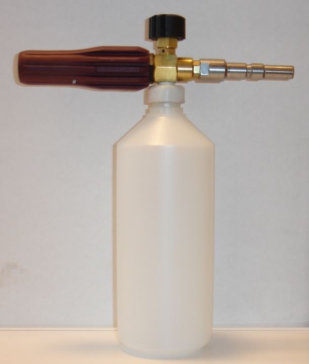 Popis: penový injektor pre vysokotlakové čistiace stroje určený pre jednoduchú a rýchlu aplikáciu aktívnej peny. Vďaka optimálnemu miešaniu vzduchu, vody a čistiaceho prostriedku dosiahnete vytvorenie hustej aktívnej peny. Priehľadná fľaša, obrázok je iba ilustračný.(GT)