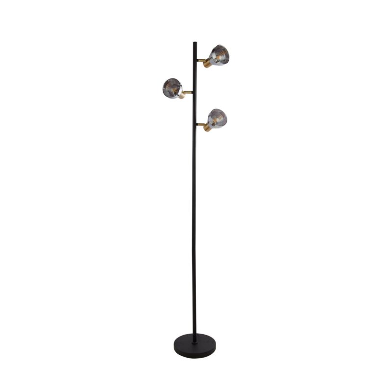 Elegantná 3-svetelná stojacia lampa, dymové sklo