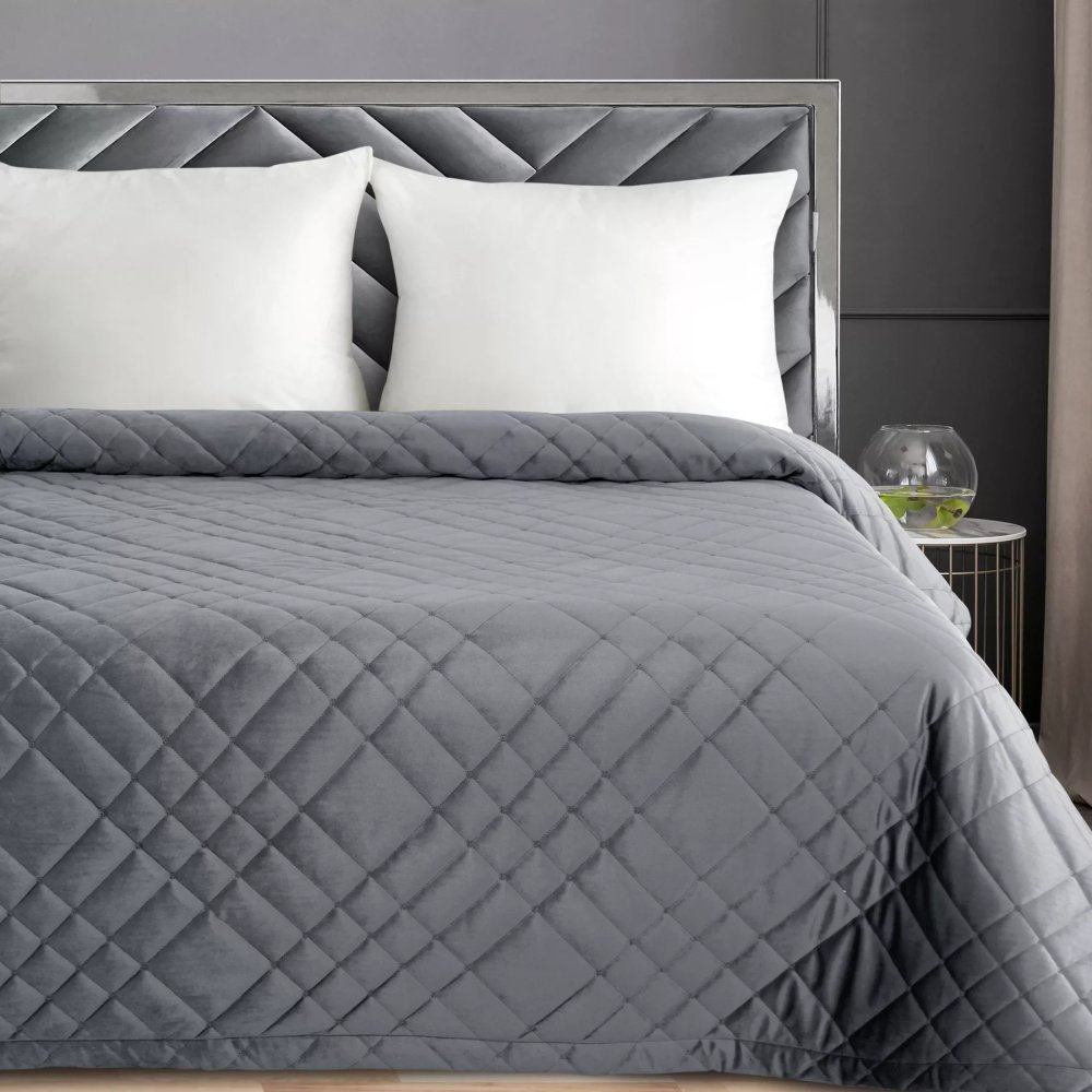 Elegantná velvetová prikrývka na posteľ s geometrickým prešívaním – sivá Šírka: 170 cm | Dĺžka: 210 cm