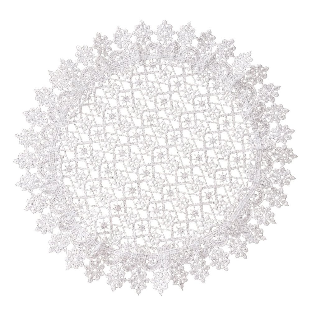 Dodajte svojmu interiéru nádych elegancie a štýlu s týmto nádherným okrúhlym obrúskom. Jemná čipkovaná textúra a prepracovaný vzor vytvárajú sofistikovaný vzhľad, ktorý dokonale doplní váš stôl, komodu či iný povrch. Klasická biela farba zaručuje univerzálnosť a nadčasovosť, vďaka čomu sa skvele hodí k rôznym dekoráciám a príležitostiam. Vyrobený z kvalitného a odolného materiálu, ľahko sa udržiava a je odolný voči pokrčeniu. Perfektný doplnok pre každú domácnosť, ktorý dodá priestoru jemnosť a noblesu.
