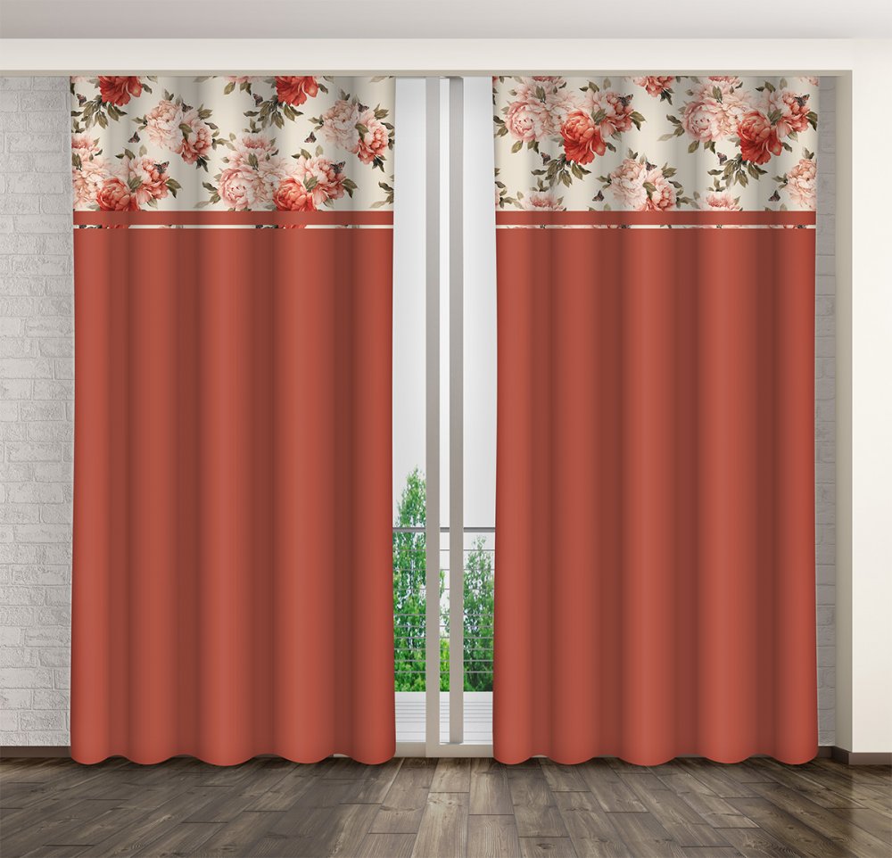 Elegantný oranžový záves s potlačou farebných kvetov Šírka: 160 cm | Dĺžka: 250 cm