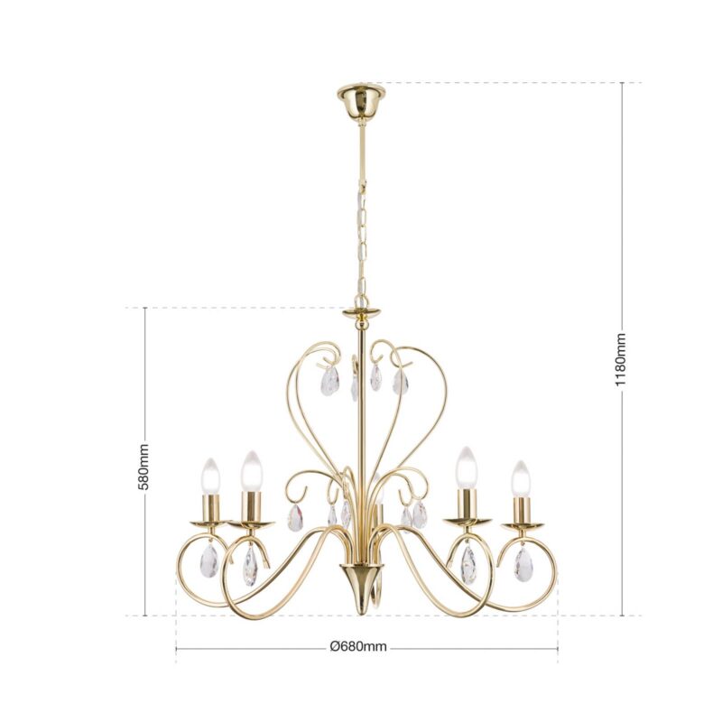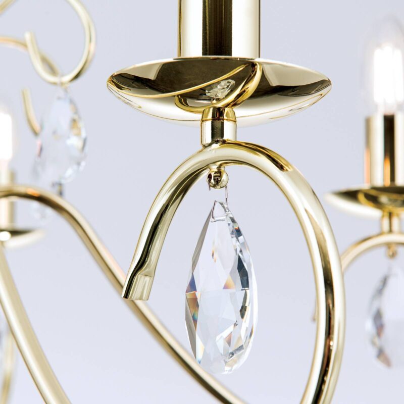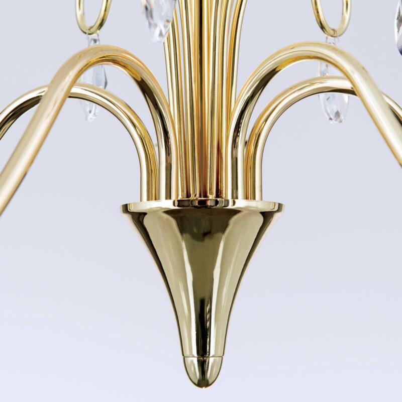 Pôvabný luster Alessia: pozlátený a so zaveseným trblietavým olovnatým krištáľom Asfour „Ľahká“ verzia lustra určite očarí všetkých, ktorí chcú vniesť kúsok starobylosti do súčasnosti. Pozlátené železo, trblietavý olovnatý krištáľ Asfour a vetrom ošľahané lampy na sviečky sa tu ušľachtilo kombinujú a robia z Fioretta jedinečný šperk.