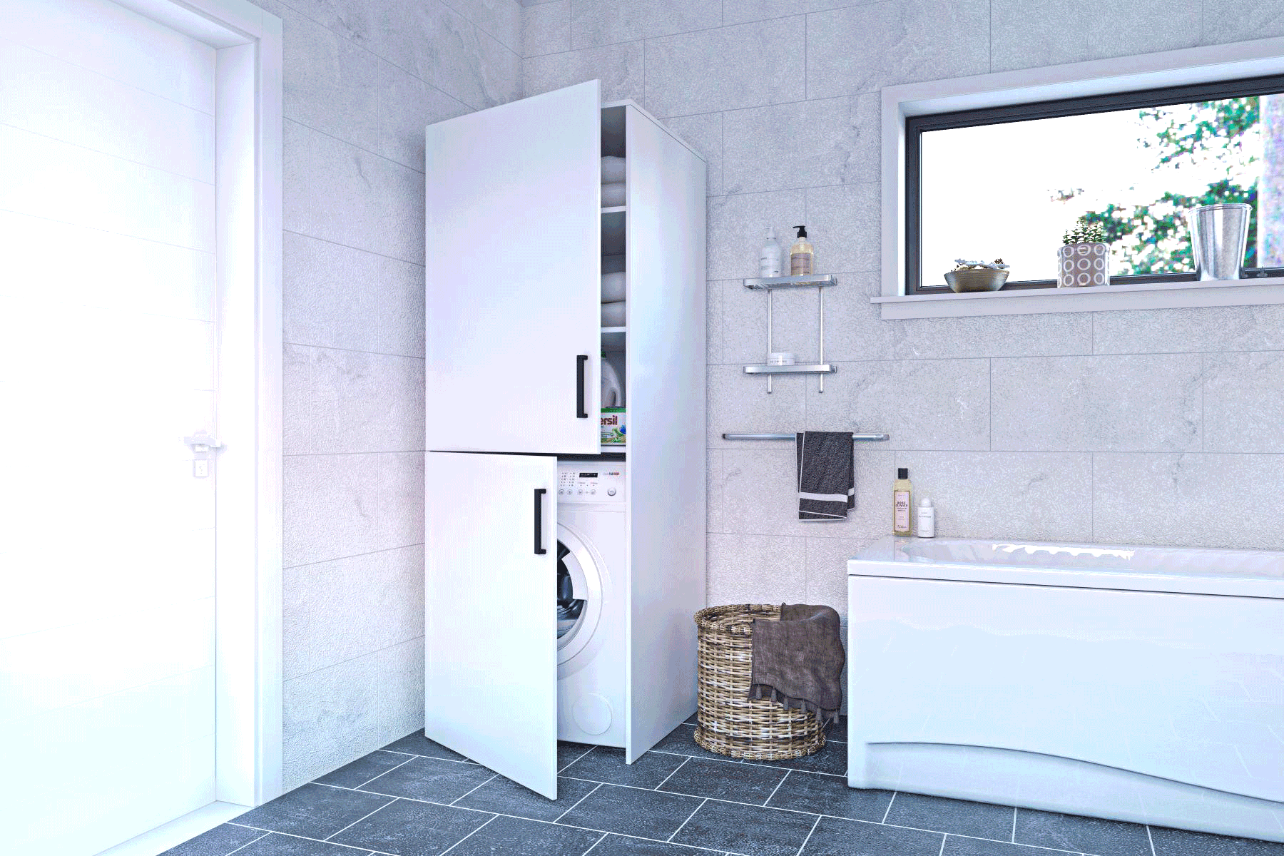 Zaujímavo riešená skrinka na práčku predstavuje praktické riešenie, ako využiť úložný priestor nad práčkou a držať v ňom čistiace prostriedky a kúpeľňové doplnky pekne usporiadané v policiach za dvierkami mimo dohľadu.Skrinka je vyrobená z kvalitnej LTD dosky. Biele farebné prevedenie.Rozmery: v/š/h: 190 x 70 x 68 cm.Dodávame v demonte.