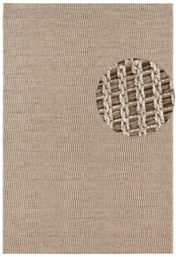 Kusový koberec Brave 103610 z kolekcie Elle sa radí medzi cenovo dostupné a je obšitý zo všetkých strán. Koberec je vhodný aj na vonkajšie použitie. Je vyrobený v prírodnej hnedej farbe a navodzuje pocit ručne tkaného koberca. Patrí do tzv. „Boucle