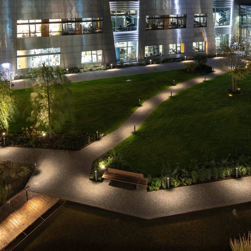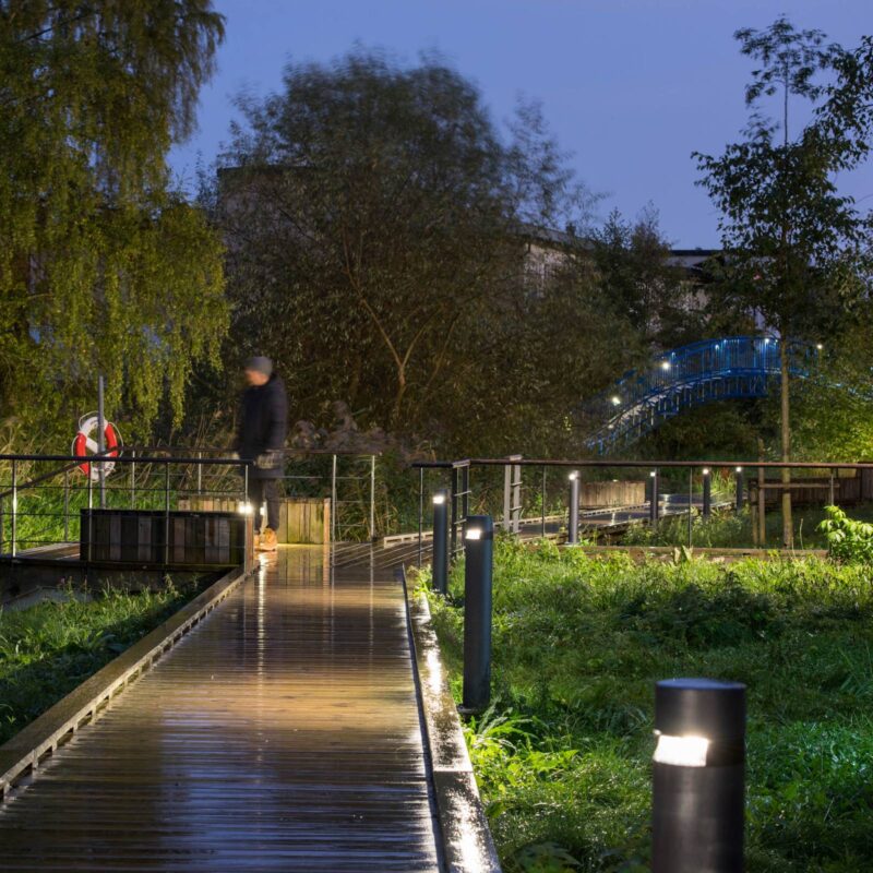 Valcové LED svietidlo Castor od spoločnosti ERCO, radiálne distribučné podlahové svietidlo Svietidlo Castor LED na chodník je vyrobené z hliníka s práškovou povrchovou úpravou a má podobu jednoduchého valca v grafitovej farbe. Horná časť má po celom obvode výklenok, v ktorom sú integrované výkonné LED diódy. Ich svetlo sa vyžaruje šikmo nadol cez 360° svetlovodný prstenec z optického polyméru, takže sa dosiahne osvetlenie povrchu podlahy zo všetkých strán. – So základnou doskou na montáž na kus zeme, betónovú kotvu alebo montážnu dosku – Reflektor: plastový, hliníkový, lesklý strieborný – s prepínateľným ovládacím zariadením – dva káblové vstupy, dve pripojovacie svorky – Možnosť priechodného zapojenia – Pripojená záťaž: 19 W