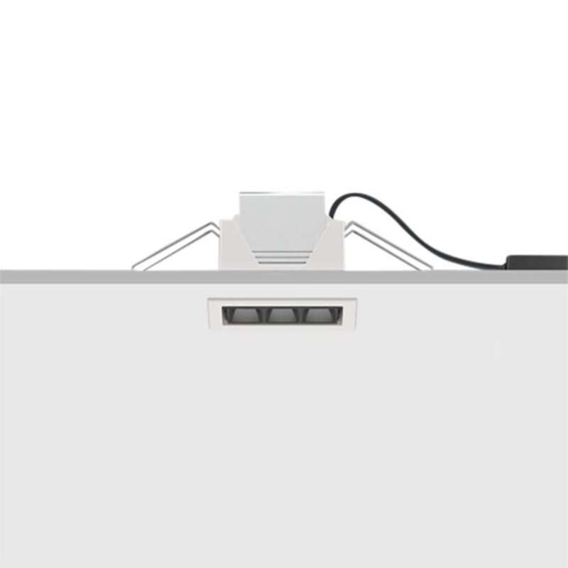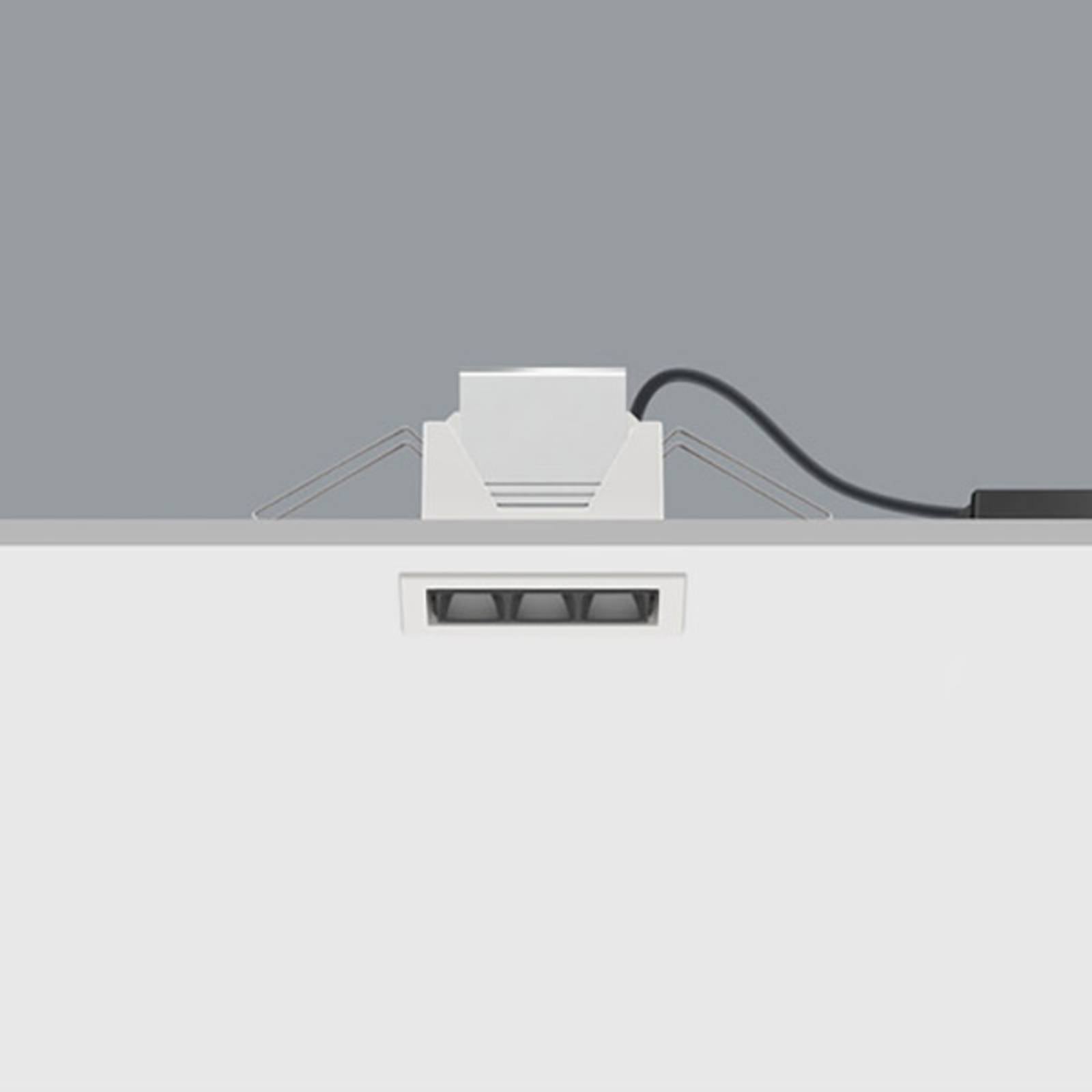 Porovnávacie LED stropné svietidlo od ERCO, široký záplava (60°), 10 W LED, stmievateľné cez fázovú časť Obdĺžnikové zapustené svietidlo Compar poskytuje celoplošné všeobecné a pracovné osvetlenie, napríklad v moderných kanceláriách. Je vybavený vysokovýkonnými LED diódami, ktorých svetlo je vyžarované ako široký kužeľ prostredníctvom technológie šošoviek z optického polyméru a je obmedzené oslnením pomocou odrezávacej žalúzie. Kompaktná konštrukcia, externá riadiaca jednotka, ktorú možno variabilne umiestniť nad podhľad, montážne pružiny a pripojenie pomocou zásuvnej svorky znižujú nároky na inštaláciu. Svetelný výkon možno ovládať pomocou externých stmievačov s vypínaním fázy. – Kontrola oslnenia v súlade so štandardom pre pracovné stanice VDU: UGR < 19 - Žalúzia proti oslneniu: plastová, natretá na čierno - so stmievateľným ovládacím zariadením ERCO - 2-pólový zástrčkový terminál - Dobré podanie farieb: Ra 92 - Pripojená záťaž: 13 W - Kryt z hliníkového profilu slúži ako chladič