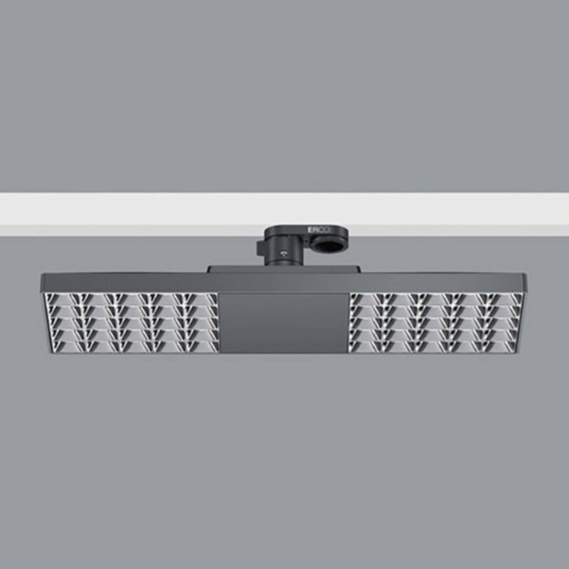 Žaluziové LED svietidlo ERCO Jilly pre 3-okruhové koľaje 230 V – 15 W LED, s otočným stmievačom, oválne široké rozloženie svetla (83° / 61°) Koľajnicové svietidlo Jilly zaujme vynikajúcou flexibilitou: možno ho stmievať pomocou vlastného otočného ovládača aj externe a vďaka veľmi dobrej regulácii oslnenia ho možno použiť aj nad pracovnými stanicami VDU v kanceláriách. Vďaka špeciálnemu systému šošoviek z optického polyméru a antireflexnej žalúzii je svetlo vyžarované veľmi široko, s rôznym uhlom lúča v pozdĺžnom a priečnom smere; v kombinácii s možnosťou otáčania o 360° na koľajnicovom adaptéri je možné svetlo dokonale zarovnať, napríklad pre dvojité pracovisko. – Žalúzia proti oslneniu: plastová, hliníková, strieborná, vysoko zrkadlová – s adaptérom pre 3-fázovú trať ERCO, 3-fázovú trať Hi-trac a 1-fázovú bodovú zásuvku – kontrola oslnenia v súlade so štandardom pre pracovné stanice VDU: UGR < 19 - Pripojená záťaž: 19 W - so stmievateľným ovládacím zariadením ERCO - možnosť stmievania pomocou otočného ovládača na svietidle alebo externých stmievačov (fázové ovládanie)