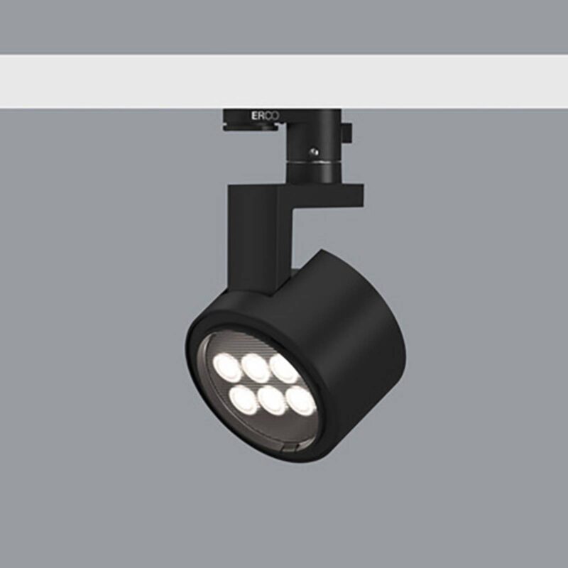Stmievateľný a nastaviteľný reflektor Parscan LED pre 230V koľaje – 12 W LED, distribúcia svetla Wallwash Reflektor Parscan od spoločnosti ERCO s výkonnými vysokovýkonnými LED diódami, namontovaný na 230V koľajnici, poskytuje vysokokvalitné, flexibilné osvetlenie interiéru na osvetlenie predajných, prezentačných a výstavných priestorov rozptýleným, širokospektrálnym svetlom podľa situácie alebo na dosiahnutie efektívneho všeobecného osvetlenia. Okrúhla hlava svietidla s plastovým krytom a jednostranná montážna konzola s vnútorným vedením káblov majú kryty z práškovo lakovaného liateho hliníka. Držiak je pripevnený k adaptéru na koľajnice (plast) tak, aby sa dal otáčať o 360° a aby sa hlava mohla otáčať o 90°. Charakteristika svetelného výkonu sa dosahuje pomocou šošovky Spherolit a kolimátorovej optiky z optického polyméru. – s adaptérom pre 3-fázovú trať ERCO, 3-fázovú trať Hi-trac alebo 1-fázovú bodovú zásuvku – so stmievateľným ovládacím zariadením ERCO – s otočným ovládačom stmievania na prednom kryte – externe stmievateľné cez fázovú časť (1 % až 100 %) – Veľmi dobré podanie farieb: Ra 92 – Pripojená záťaž: 15 W