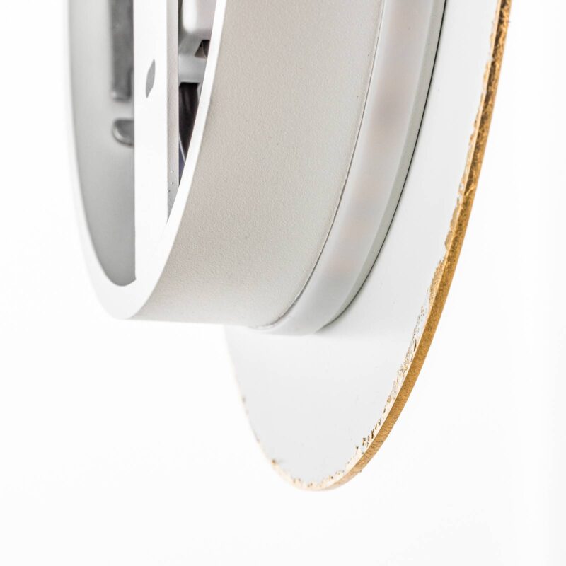 Moderné nástenné svietidlo LED Blade z drahého plátkového zlata Nepriamo svietiace nástenné svietidlo Blade sa vyznačuje príjemným svetelným efektom a moderným i hodnotným vzhľadom. Svietidlo od výrobcu Escale okamžite upúta pozornosť svojím nepravidelne štruktúrovaným zlatým povrchom. Kruhový disk z hliníka zakrýva LED diódy na zadnej strane, takže ich teplé biele svetlo vyžaruje len v smere steny, kde vytvára rozptýlené svetlo okolo svietidla. – Externý stmievateľný triak – možnosť alternatívneho pripojenia pomocou zásuvného kábla (pozri príslušenstvo) – možno použiť aj ako stropné svietidlo