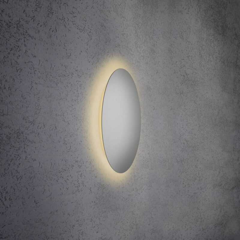 Nepriamo svietiace nástenné svietidlo LED Blade v striebornej matnej eloxovanej farbe Nástenné svietidlo LED Blade od spoločnosti Escale je príjemným zdrojom svetla v modernom dizajne. Vzhľad je obmedzený na plochý kruhový disk z hliníka, ktorý má matný eloxovaný strieborný povrch. Ten je umiestnený v malej vzdialenosti pred stenou a úplne tieni LED diódy za ním. Ich teplé biele svetlo sa odráža od zadnej strany disku a vyžaruje na stenu. Výsledkom je mäkká svetelná koróna, ktorá osvetľuje okolie nástennej lampy Blade. – Externý triak stmievateľný – možnosť alternatívneho pripojenia pomocou zásuvného kábla (pozri príslušenstvo) – možno použiť aj ako stropné svietidlo