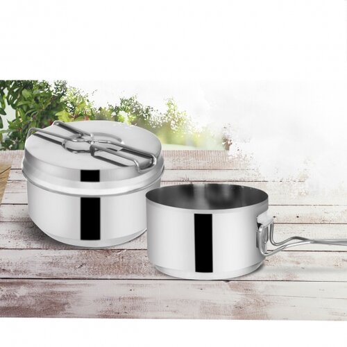 Dva nehrdzavejúce ešusy s objemom 1,5 la 0,9 l a viečko sú nevyhnutnou súčasťou pre to pravé táborenie v lone prírody. Vychutnajte si hubový guláš z kotlíka alebo si nechajte nabrať jedlo v táborovej kuchyni. Na čerstvom vzduchu vždy chutí najviac. Viečko môžete použiť aj ako tácku na krajec chleba alebo na buchtu ku káve. Všetko zložíte do jedného kompaktného celku, ktorý nezaberie toľko miesta v batožine.
