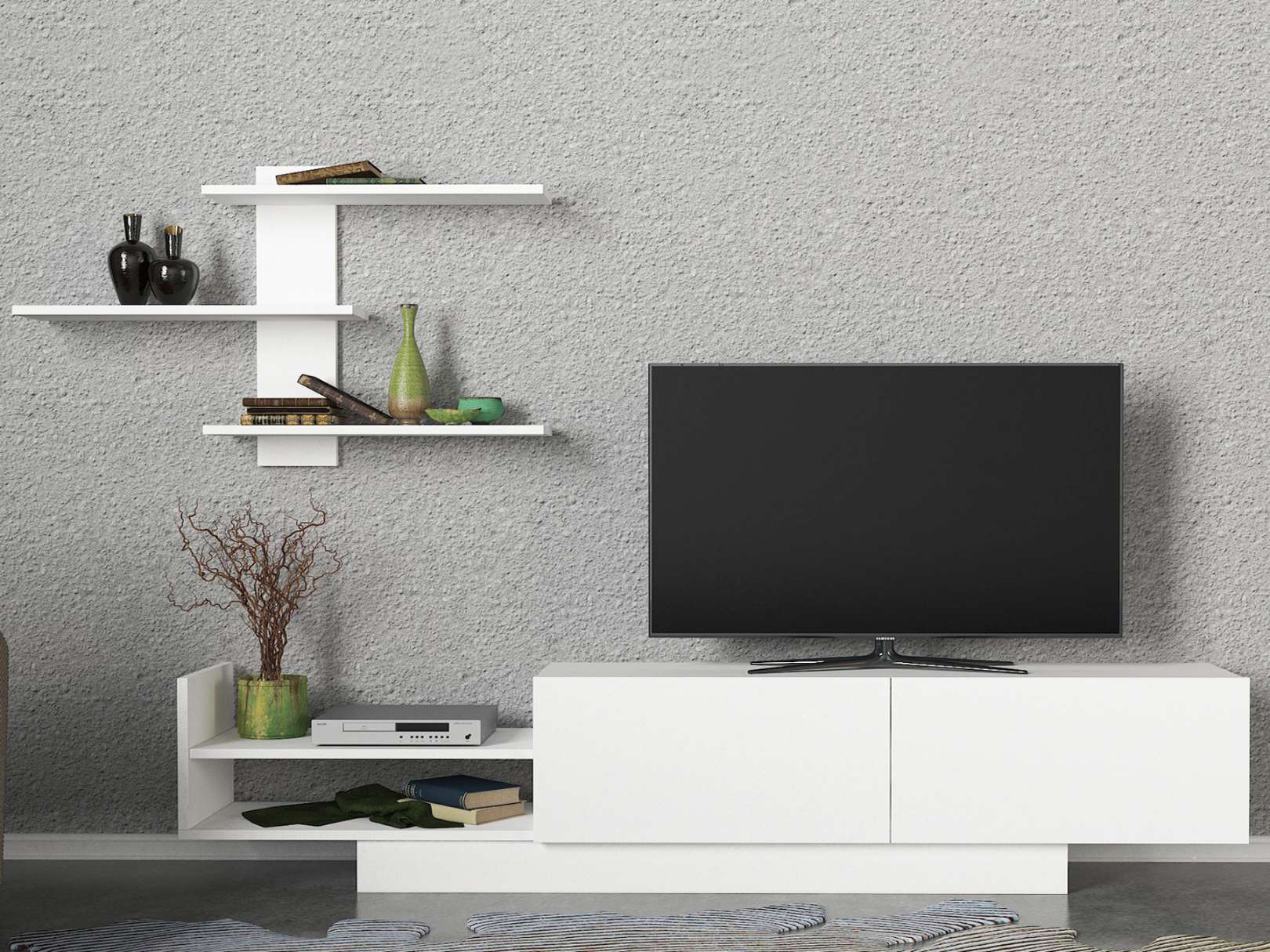 Objavte EUGENE, obývaciu stenu v škandinávskom štýle, ktorá prináša do vašej obývačky vzdušnosť a jednoduchosť. Táto elegantná zostava v bielej farbe ponúka perfektnú kombináciu funkčnosti a moderného dizajnu, ktorá obohatí akýkoľvek interiér.Detailný popisTyp tovaru: Obývacia stenaMateriál: Kvalitný LTD s hrúbkou 18 mm, čo zaisťuje vysokú odolnosť a dlhú životnosť.Rozmery: TV stolík (180 x 31.8 x 40 cm) a nástenná polica (95.5 x 22.3 x 60 cm), poskytujúca účinné riešenie pre usporiadanie vašej elektroniky a dekoratívnych prvkov.Farba: Čistá biela, ktorá pridáva priestoru sviežosť a rozjasňuje každý kút.Štýl: Škandinávsky dizajn so zameraním na minimalizmus, funkčnosť a prírodný vzhľad.Vybavenie: Regálka ponúka ďalší úložný priestor pre knihy, dekorácie alebo multimédiá.Dodatočné informácie: Produkt dodávame v demontovanom stave, čo uľahčuje jeho transport a montáž.Obývacia stena EUGENE je ideálnou voľbou pre tých, ktorí hľadajú elegantný a praktický kus nábytku, ktorý poskytuje dostatok priestoru na uskladnenie a zároveň prináša do domova pocit pokoja a harmónie typický pre škandinávsky štýl. >