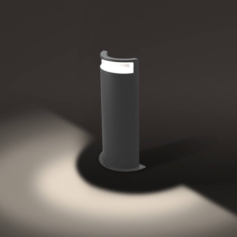 LED cestné svetlo Halbo v tvare polstĺpa, antracitová farba Halbo je pevné cestné svetlo LED v tvare polkruhového stĺpa, vyrobené z tlakovo liateho hliníka a povrchovo upravené práškovou farbou v antracitovej farbe. Svietidlo na cestu vďaka svojej konštrukcii nevytvára efekt oslnenia. Je ideálny na osvetlenie ciest, záhonov, terás a mnohých ďalších miest a vďaka svojmu dizajnu je vhodný pre akýkoľvek vonkajší priestor. Svetelná cesta je pripojená pomocou skrutkovej svorky. LED cestné svetlo Halbo je vybavené teplými bielymi LED diódami, ktoré vyžarujú svetlo v širokom uhle.