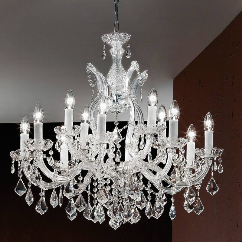 Excelentný luster LILIANA s krištáľmi Výnimočný luster LILIANA v štýle Márie Terézie s polobrúsenými visiacimi krištáľmi. Tento luster krásne ozdobí priestory každého typu a umožní dosiahnuť jedinečný nádych pôvabu. Žiarovky osadené v držiakoch na sviečky vyžarujú romantickú atmosféru a v kombinácii s krásnymi krištáľmi vytvárajú jedinečné svetelné odrazy. Ponorte sa do sveta baroka a užite si hodiny pohody v lesku tohto trblietavého svietidla.