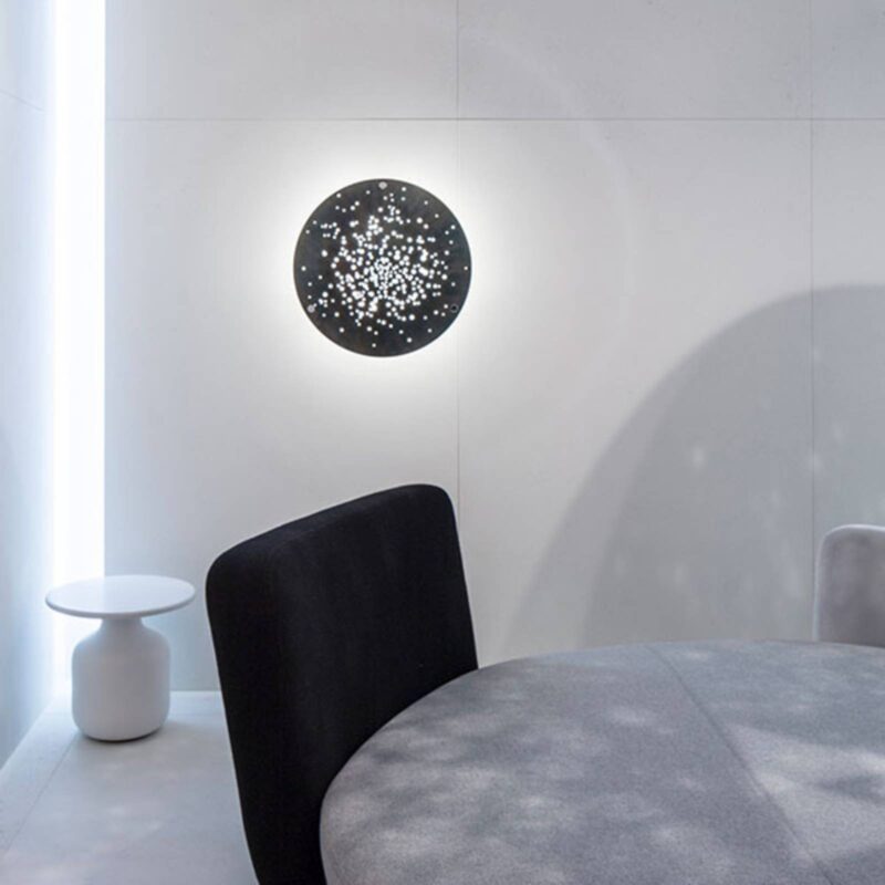 Jedinečné dizajnové nástenné svietidlo LED LensNavrhla ho česká dizajnérka Lucie Koldová.Nástenné svietidlo LED Lens slúži ako pôsobivý zariaďovací predmet a dekoratívny zdroj svetla pre priestranné a kvalitne zariadené súkromné a verejné priestory. Povrchová úprava tienidla je vytvorená zložitým remeselným postupom. Po oxidácii povrchu ohňom sa povrch kartáčuje, hubkuje, leští a brúsi. Tým získava každý jednotlivý objektív Lens jedinečný nádych. Svetlo z LED pásu dopadá na vypuklé tienidlo v tvare šošovky a do miestnosti cez jeho nepravidelne usporiadané okrúhle otvory rôznych veľkostí. Dizajn môže pripomínať starožitný štít alebo hviezdnu nočnú oblohu – Lens nekladie fantázii diváka žiadne medze.