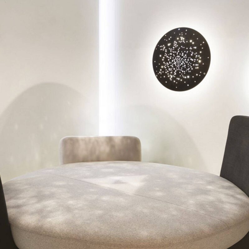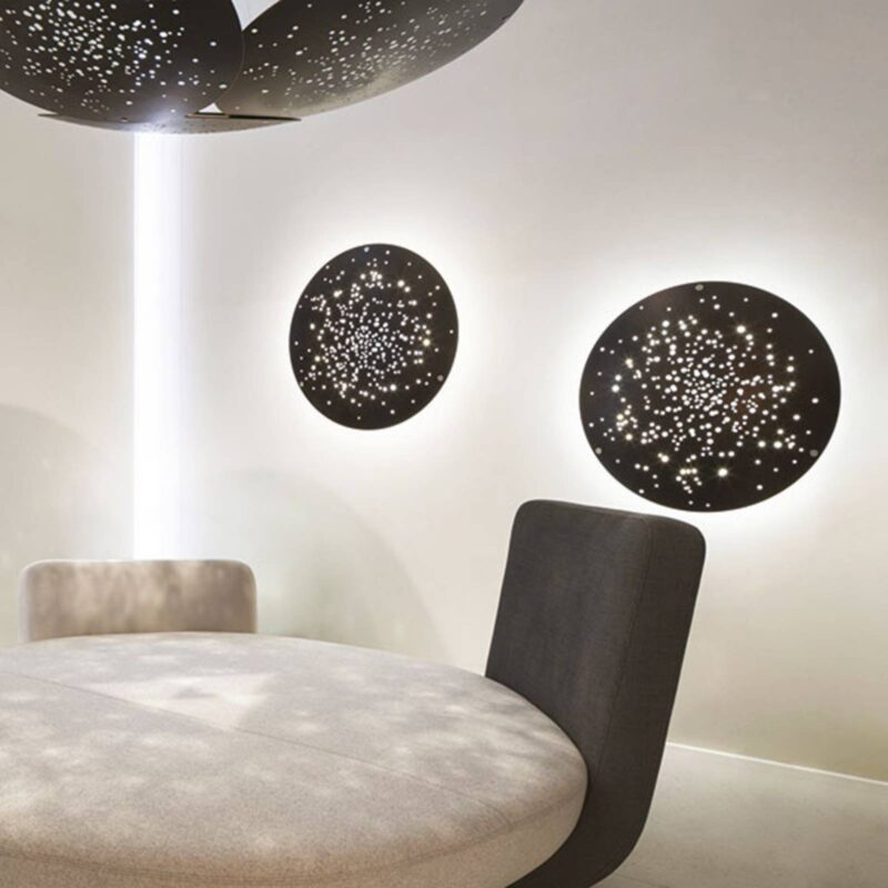 Jedinečné dizajnové nástenné svietidlo LED LensNavrhla ho česká dizajnérka Lucie Koldová.Nástenné svietidlo LED Lens slúži ako pôsobivý zariaďovací predmet a dekoratívny zdroj svetla pre priestranné a kvalitne zariadené súkromné a verejné priestory. Povrchová úprava tienidla je vytvorená zložitým remeselným postupom. Po oxidácii povrchu ohňom sa povrch kartáčuje, hubkuje, leští a brúsi. Tým získava každý jednotlivý objektív Lens jedinečný nádych. Svetlo z LED pásu dopadá na vypuklé tienidlo v tvare šošovky a do miestnosti cez jeho nepravidelne usporiadané okrúhle otvory rôznych veľkostí. Dizajn môže pripomínať starožitný štít alebo hviezdnu nočnú oblohu – Lens nekladie fantázii diváka žiadne medze.