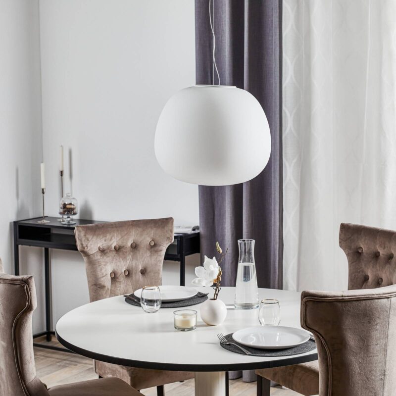 Nádherná závesná lampa MOCHI pre krásne chvíle životaZávesná lampa Mochi je vyrobená z fúkaného skla a bieleho lakovaného kovu alebo vystuženého polyesteru so sklenenými vláknami. Biele telá lampy visia vo vzduchu ako žiariace gule, a tak okamžite upútajú pozornosť. Ale ani keď sú vypnuté, nemožno ich prehliadnuť, pretože žiarivá biela spolu s oblým tvarom vždy upútajú pozornosť.svetelný pôžitok na najvyššej úrovni – FabbianOd roku 1961 vyrába spoločnosť Fabbian Illuminazione v talianskom Trevise neďaleko Benátok vysokokvalitné dizajnové svietidlá. Odvtedy si spoločnosť získala medzinárodné renomé a v súčasnosti predáva svoje výrobky v mnohých krajinách sveta vrátane Austrálie, Dánska, Indie, Nového Zélandu, Izraela a Turecka.celosvetová spolupráca s renomovanými dizajnérmi a architektmiFabbian investuje rovnako intenzívne do inovatívnych výrobných procesov ako do prieskumu trhu a podľa získaných poznatkov prispôsobuje svoj sortiment výrobkov. K tomu prispieva aj celosvetová sieť spolupráce s renomovanými dizajnérmi a architektmi, ktorá sa v priebehu rokov neustále rozrastá. Svietidlá Fabbian sú preto zárukou maximálnej kreativity a funkčnosti.