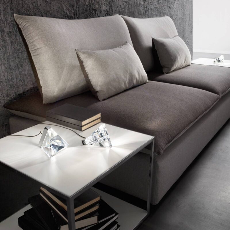 Štýlové akcentové osvetlenie so stolnou lampou LED TriplaMalá, ale mocná – tak by sa dala opísať stolná lampa Tripla, ktorá sa skladá z kovového držiaka a viacvrstvového brúseného krištáľového skla, ktoré je výnimočným tienidlom lampy. V tomto krištáľovom skle sa nachádzajú teplé biele LED diódy, ktoré toto sklenené telo rozžiaria, a tým aj rozžiaria. Svetelné lúče sa niekoľkokrát lámu a vytvárajú krásne hry svetla v celej miestnosti. Stolná LED lampa Tripla, ktorú navrhli Devis Busato a Giulia Ciccarese, je mimoriadne štýlovým akcentom v moderných obývacích izbách.