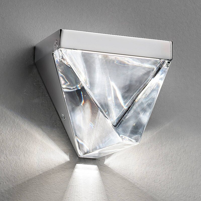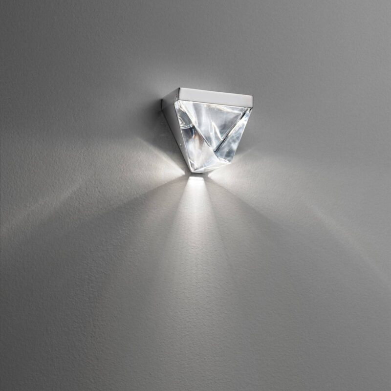Trblietavé akcentové osvetlenie s dizajnovou nástennou lampou TriplaDizajnová nástenná lampa Tripla visí na stene ako malý trblietavý krištáľ. Či už na chodbe, v obývacej izbe alebo v prestížnych verejných budovách, ako sú hotely, recepcie atď. – toto nástenné svietidlo vybavené LED diódami je všade krásnym pútačom pohľadov a ozdobou celej miestnosti. Okrem kovového rámu sa svietidlo skladá najmä z krištáľového skla, ktoré má viacvrstvový dizajn. To vytvára lomy svetla, ktoré sa v miestnosti šíria ako iskričky. Nástenné LED svietidlo Tripla, ktoré navrhli Devis Busato a Giulia Ciccarese, je mimoriadne štýlovým akcentom v moderných miestnostiach.