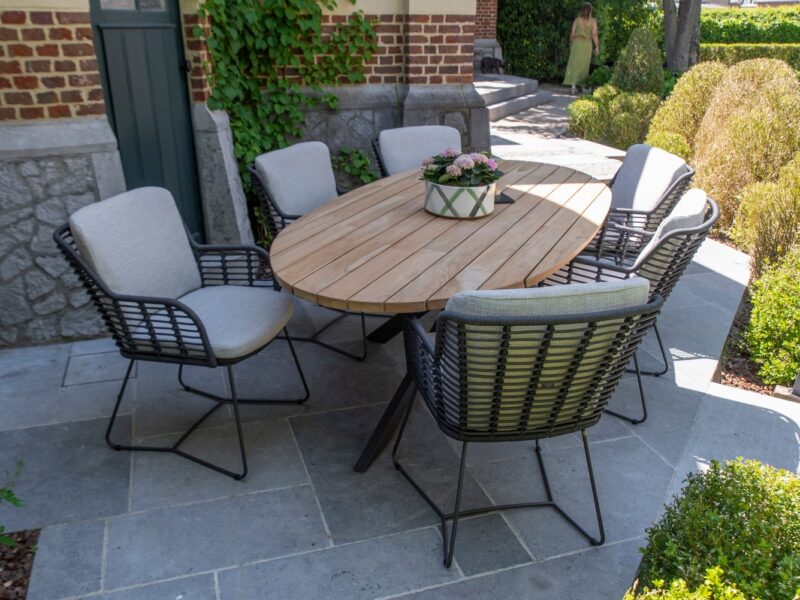 Záhradná jedálenská stolička z kolekcie Fabrice vám poskytne príjemné sedenie na terase.