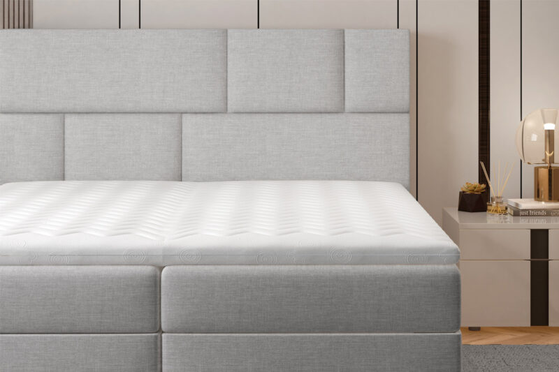 Posteľ FANCY patrí medzi boxspringové postele. Najvýraznejším prvkom je vyvýšené čelo postele, ktoré poskytne pohodlnú opierku hravy a ochráni stenu pred oderom. Jednoduché prešívanie vytvára jemný obdĺžnikový vzor, ktorý sa stane ozdobou Vašej spálne. Jednofarebné prevedenie dáva možnosť variabilnej kombinácie s ďalším nábytkom či farbami. Výška ložnej plochy poskytne pohodlné vstávanie a sadanie na posteľ. Moderný dizajn postele je prepojený s praktickým riešením priestoru. Posteľ ponúka spaciu plochu 145 x 200 cm, členenú na dve časti. Pod každou z nich nájdete úložné boxy. Využívajú UP systém otvárania, vďaka ktorému sa jednoduchým spôsobom dostanete ku predmetom uloženým v boxoch.Jednostranný matrac je z bonellovej pružiny, kombinovaný s PUR penou T25. Pre ešte lepší pocit je súčasťou postele horný topper s výškou 4 cm. Poťah je hypoalergénny, snímateľný a prateľný pri 40 ℃. Posteľ je celočalúnená kvalitnou látkou Berlin 01.Rozmery (š/v/h): 145 x 124 x 210 cm. Výška ložnej plochy je 54 cm. Hrúbka zadného čela je 10 cm. Výška nožičiek je 3 cm. Posteľ sa predáva kompletná, nie je potrebné doobjednávať rošt ani matrac. Tvrdosť matraca: H3.V našej ponuke nájdete aj ďalšie rozmery a farebné prevedenia tejto unikátnej postele.