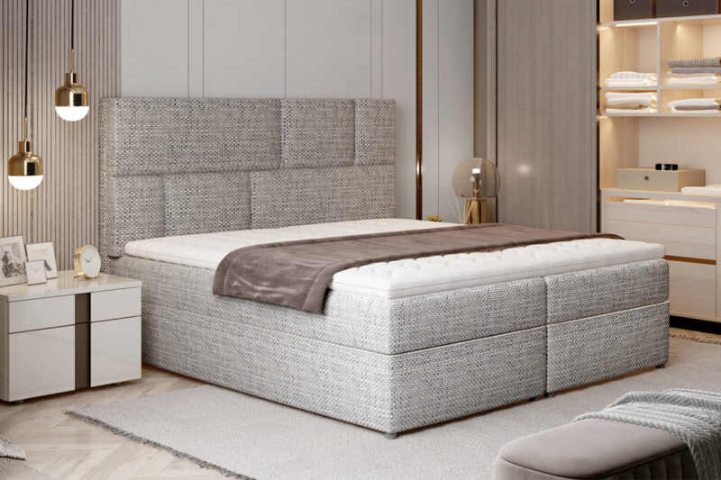 Posteľ FANCY patrí medzi boxspringové postele. Najvýraznejším prvkom je vyvýšené čelo postele, ktoré poskytne pohodlnú opierku hravy a ochráni stenu pred oderom. Jednoduché prešívanie vytvára jemný obdĺžnikový vzor, ktorý sa stane ozdobou Vašej spálne. Jednofarebné prevedenie dáva možnosť variabilnej kombinácie s ďalším nábytkom či farbami. Výška ložnej plochy poskytne pohodlné vstávanie a sadanie na posteľ. Moderný dizajn postele je prepojený s praktickým riešením priestoru. Posteľ ponúka spaciu plochu 185 x 200 cm, členenú na dve časti. Pod každou z nich nájdete úložné boxy. Využívajú UP systém otvárania, vďaka ktorému sa jednoduchým spôsobom dostanete ku predmetom uloženým v boxoch.Jednostranný matrac je z bonellovej pružiny, kombinovaný s PUR penou T25. Pre ešte lepší pocit je súčasťou postele horný topper s výškou 4 cm. Poťah je hypoalergénny, snímateľný a prateľný pri 40 ℃. Posteľ je celočalúnená kvalitnou látkou Berlin 01.Rozmery (š/v/h): 185 x 124 x 210 cm. Výška ložnej plochy je 54 cm. Hrúbka zadného čela je 10 cm. Výška nožičiek je 3 cm. Posteľ sa predáva kompletná, nie je potrebné doobjednávať rošt ani matrac. Tvrdosť matraca: H3.V našej ponuke nájdete aj ďalšie rozmery a farebné prevedenia tejto unikátnej postele.