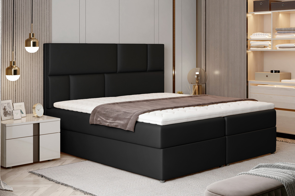 Posteľ FANCY patrí medzi boxspringové postele. Najvýraznejším prvkom je vyvýšené čelo postele, ktoré poskytne pohodlnú opierku hravy a ochráni stenu pred oderom. Jednoduché prešívanie vytvára jemný obdĺžnikový vzor, ktorý sa stane ozdobou Vašej spálne. Jednofarebné prevedenie dáva možnosť variabilnej kombinácie s ďalším nábytkom či farbami. Výška ložnej plochy poskytne pohodlné vstávanie a sadanie na posteľ. Moderný dizajn postele je prepojený s praktickým riešením priestoru. Posteľ ponúka spaciu plochu 165 x 200 cm, členenú na dve časti. Pod každou z nich nájdete úložné boxy. Využívajú UP systém otvárania, vďaka ktorému sa jednoduchým spôsobom dostanete ku predmetom uloženým v boxoch.Jednostranný matrac je z bonellovej pružiny, kombinovaný s PUR penou T25. Pre ešte lepší pocit je súčasťou postele horný topper s výškou 4 cm. Poťah je hypoalergénny, snímateľný a prateľný pri 40 ℃. Posteľ je celočalúnená kvalitnou eko-kožou Soft 11.Rozmery (š/v/h): 165 x 124 x 210 cm. Výška ložnej plochy je 54 cm. Hrúbka zadného čela je 10 cm. Výška nožičiek je 3 cm. Posteľ sa predáva kompletná, nie je potrebné doobjednávať rošt ani matrac. Tvrdosť matraca: H3.V našej ponuke nájdete aj ďalšie rozmery a farebné prevedenia tejto unikátnej postele.