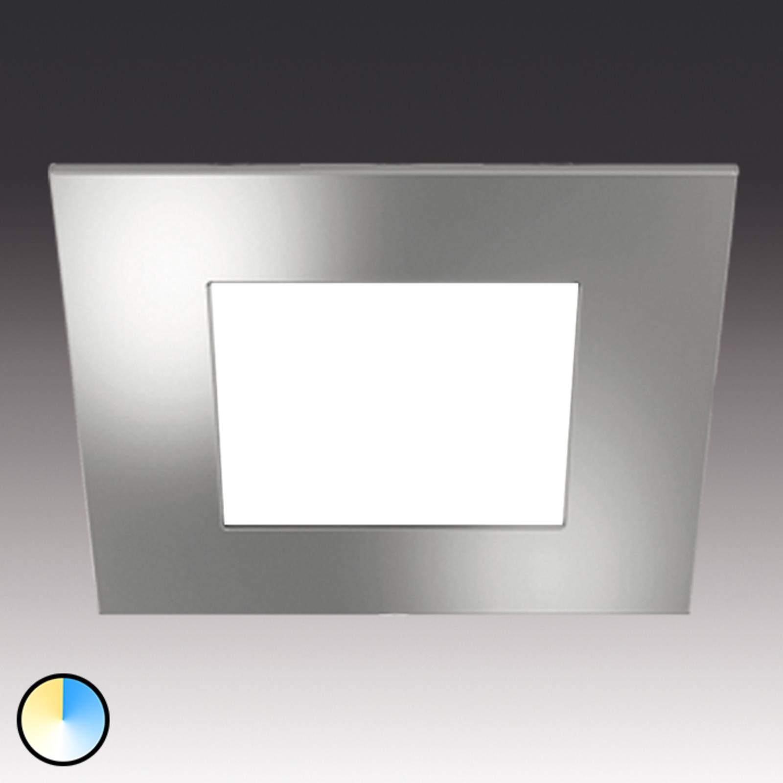 Štvorcové zapustené svietidlo Dynamic s rámom Plastové zapustené svietidlo je jednoduchým prvkom pre všetky mysliteľné obytné priestory. V spálni sa lampa ukazuje ako rovnako efektívna a funkčná ako vo vstupnom priestore. Nie je zvlášť vhodný pre kúpeľňu, ale toto praktické osvetlenie by malo byť umiestnené v mnohých priestoroch bytu. Samotný jednoduchý rám z matného chrómu po inštalácii vyžaruje atraktívny efekt. V saténovom vzhľade štvorec na vnútornej strane tlmí priateľské LED svetlo. To sa zdá nielen tlmené, ale aj to šetrí energiu. Vďaka 2,5 metrov dlhému pripojovaciemu káblu môže byť svietidlo umiestnené na správnom mieste v mnohých obytných priestoroch, kde je potrebné svetlo. Jemný efekt sľubuje priateľské osvetlenie pre útulnú atmosféru osvetlenia. farba svetla je možné regulovať od teplej bielej 2 700 Kelvinov po denne svetlo 5 000 Kelvinov. Potrebný transformátor a dynamický regulátor so 4-smerným rozdeľovačom a prídavným rádiovým diaľkovým ovládaním sú k dispozícii osobitne ako príslušenstvo pod 4514282 a 4514283. Poznámka: Pri zapustenej montáži na panely 16 mm používajte na izoláciu dištančné prvky minimálne 50 mm. – žiadna UV zložka vo svetle – Vzdialenosť medzi svetlami: 45-70 cm