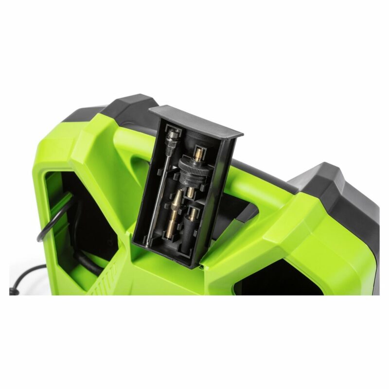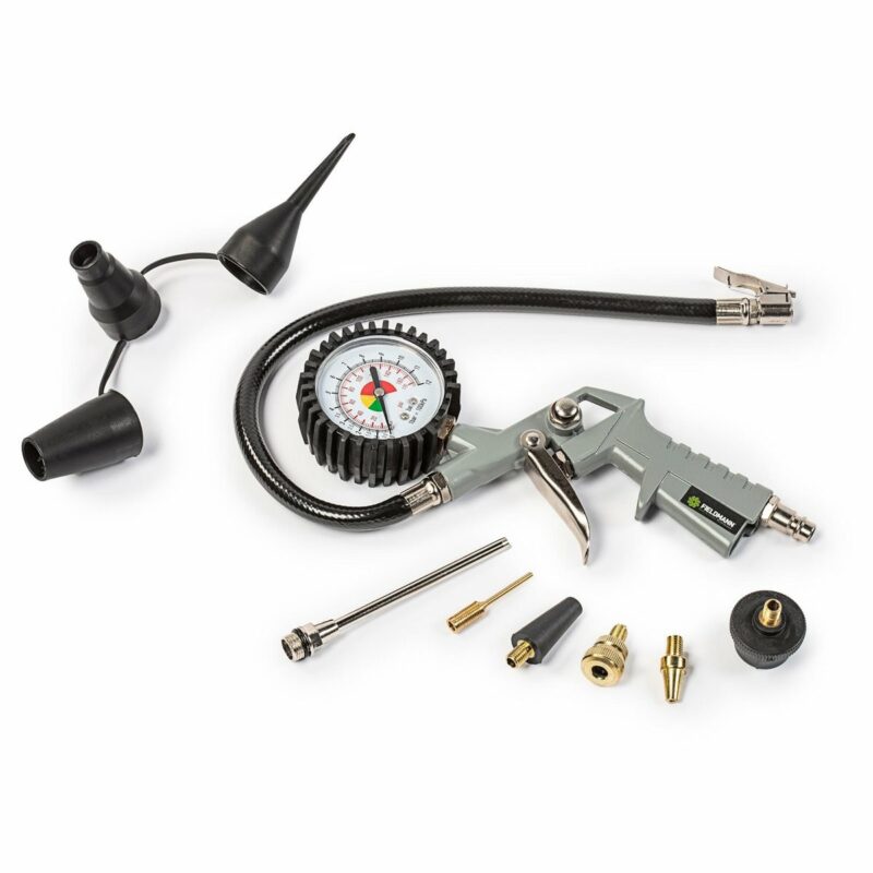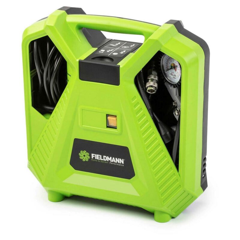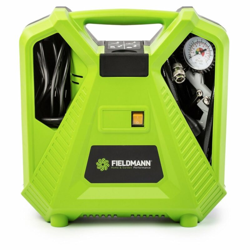 Bezolejový vzduchový kompresor Fieldmann FDAK 201101-E s napájaním na 230 V sa hodí do každej garáže. Kompresor bez nádrže s kapacitou sania 180 l/min. je ľahko prenosný a využitie nájde na hustenie pneumatík, člnov a lehátok. Celá sada obsahuje celkom 8 kusov príslušenstva, vrátane merača tlaku v ručnej pištoli.