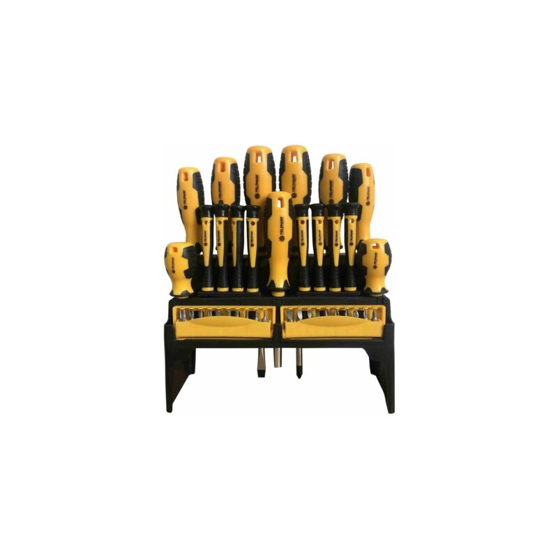 Sada skrutkovačov FIELDMANN FDS 5006-37R z kvalitného materiálu, ktorý sa vyznačuje vysokou pevnosťou a zaisťuje oveľa menšie opotrebenie, čím sa predlžuje životnosť skrutkovačov. V sade nájdete všetky najčastejšie používané skrutkovače v domácnosti. Súčasťou balenia je aj praktický držiak, ktorý je možné pripevniť na stenu alebo dvierka napr. skrinky na náradie.Obsah balenia: