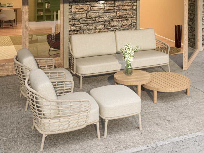 Teakový konferenčný stolík Fin v prírodnom sfabení a jednoduchom dizajne doplní širokú škálu sedacích súprav.